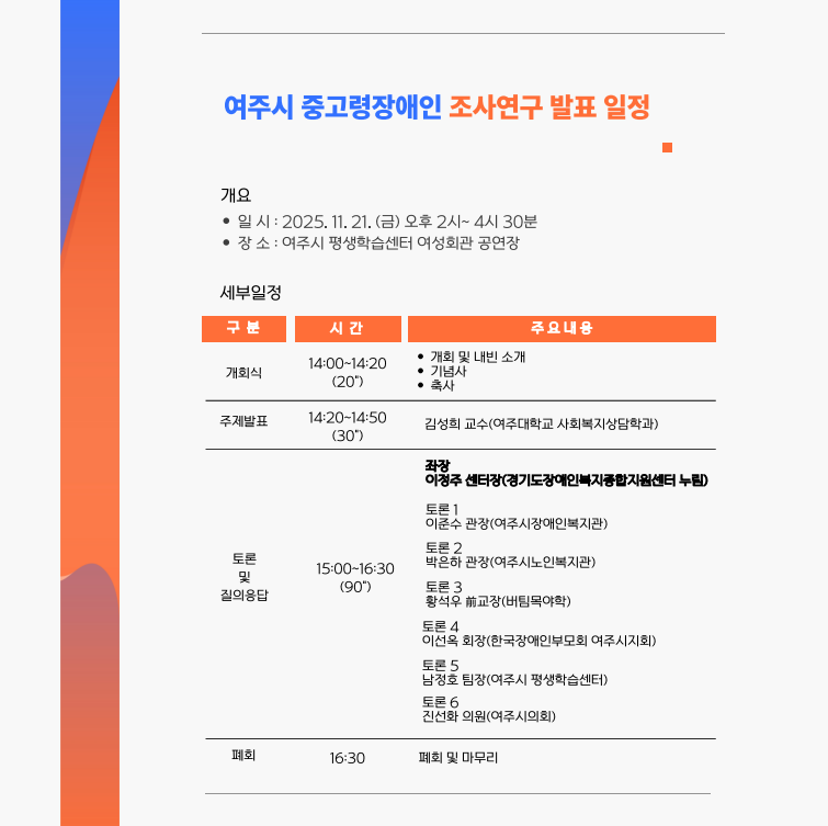 2025³â ¿©Áֽà Áß°í·É Àå¾ÖÀÎ Á¶»ç¿¬±¸ ¹ßǥȸ È«º¸ ¾È³» (¿©ÁÖ½ÃÀå¾ÖÀΰ¡Á·Áö¿ø¼¾ÅÍ)