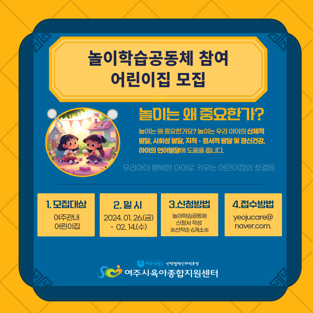 (¸¶°¨µÇ¾ú½À´Ï´Ù.) ¡Ú [2024³â ³îÀÌÇнÀ°øµ¿Ã¼] Âü¿© ½Å±Ô ¾î¸°ÀÌÁý ¸ðÁý ¡Ú