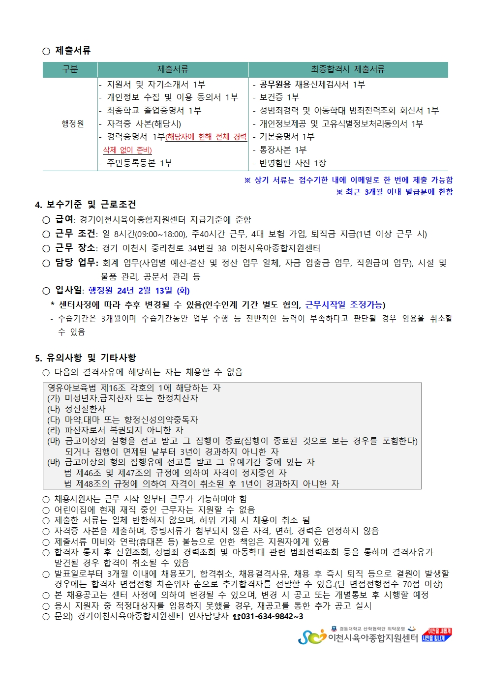 °æ±âÀÌõ½ÃÀ°¾ÆÁ¾ÇÕÁö¿ø¼¾ÅÍ Á÷¿ø ä¿ë °ø°í