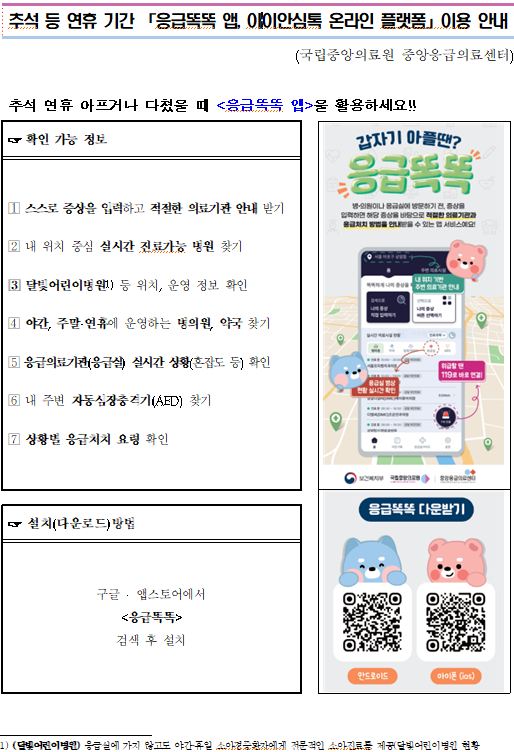 Ãß¼® µî ¿¬ÈÞ ±â°£ ¡¸ÀÀ±Þ¶È¶È ¾Û, ¾ÆÀ̾ȽÉÅå ¿Â¶óÀÎ Ç÷§Æû¡¹ÀÌ¿ë ¾È³»