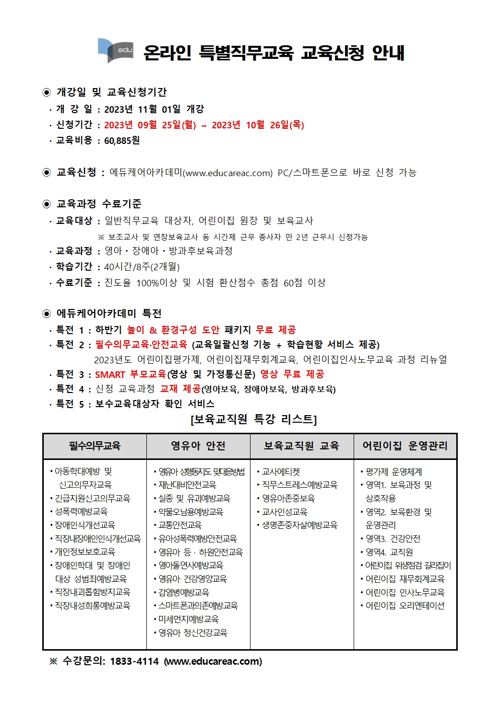 ¿¡µàÄɾî - ¿Â¶óÀΠƯº°Á÷¹«±³À° ±³À°½Åû ¾È³»