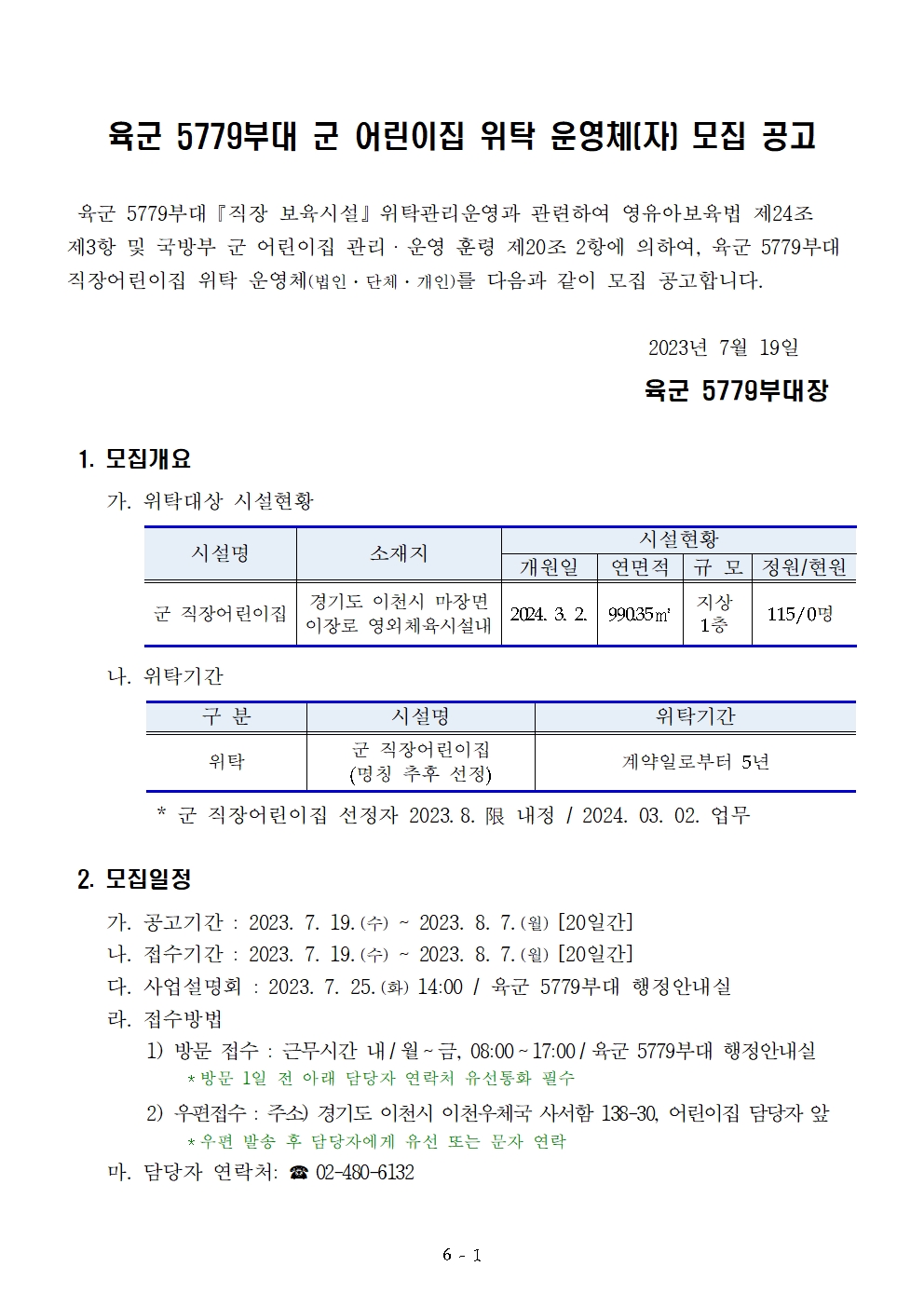 À°±º 5779ºÎ´ë ±º ¾î¸°ÀÌÁý À§Å¹ ¿î¿µÃ¼(ÀÚ) ¸ðÁý °ø°í