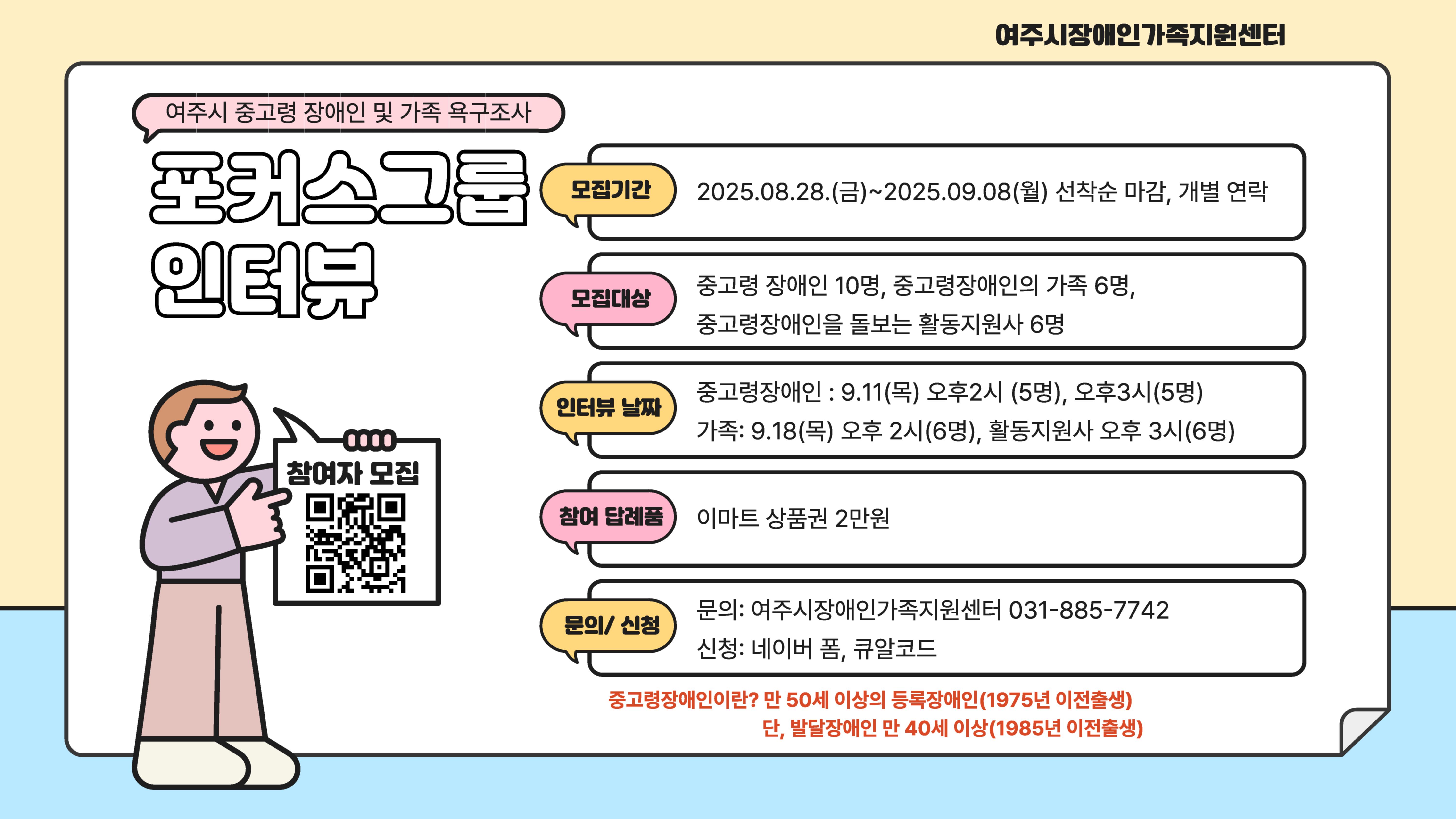 2025³â ¿©Áֽà [Áß°í·ÉÀå¾ÖÀÎ ¹× °¡Á·¿å±¸Á¶»ç Æ÷Ä¿½º ±×·ìÀÎÅͺä] Âü¿©ÀÚ ¸ðÁý ¾È³»