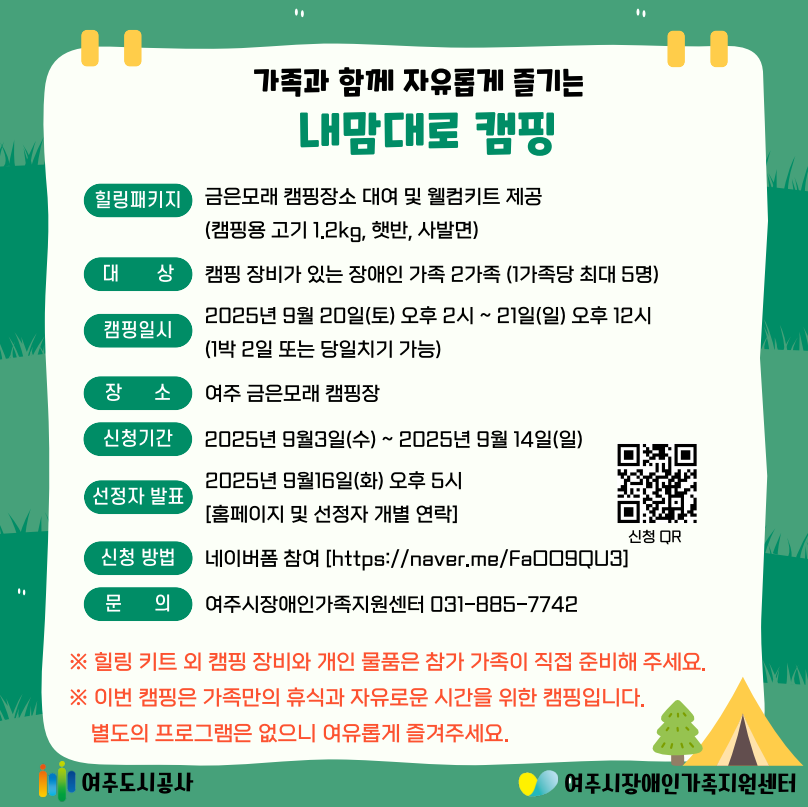 2025³â °¡Á·°ú ÇÔ²² ÀÚÀ¯·Ó°Ô Áñ±â´Â¡¸³»¸¾´ë·Î Ä·ÇΡ¹Âü¿©ÀÚ ¸ðÁý¾È³» (¿©ÁÖ½ÃÀå¾ÖÀΰ¡Á·Áö¿ø¼¾ÅÍ)