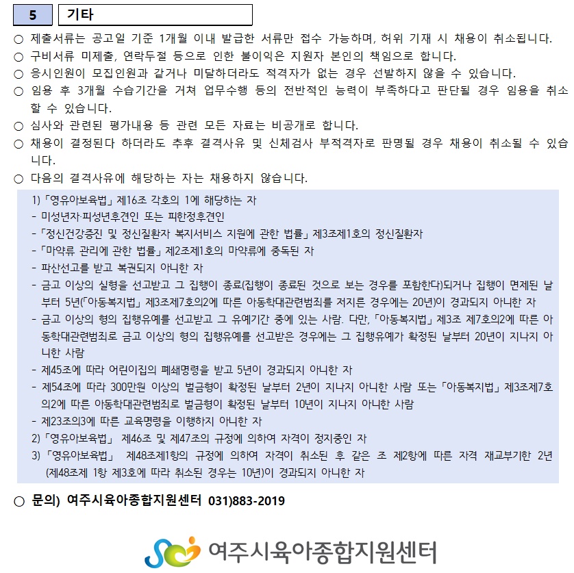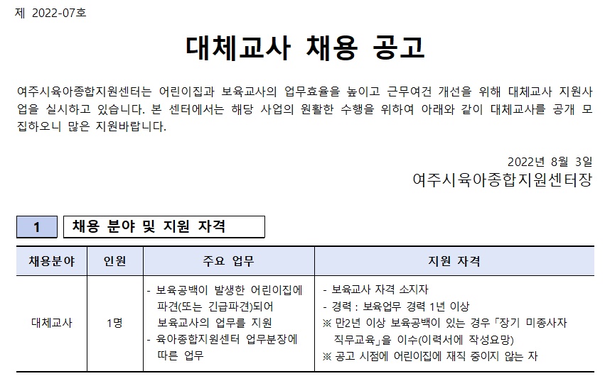 ¿©ÁÖ½ÃÀ°¾ÆÁ¾ÇÕÁö¿ø¼¾ÅÍ / ´ëü±³»ç ä¿ë°ø°í