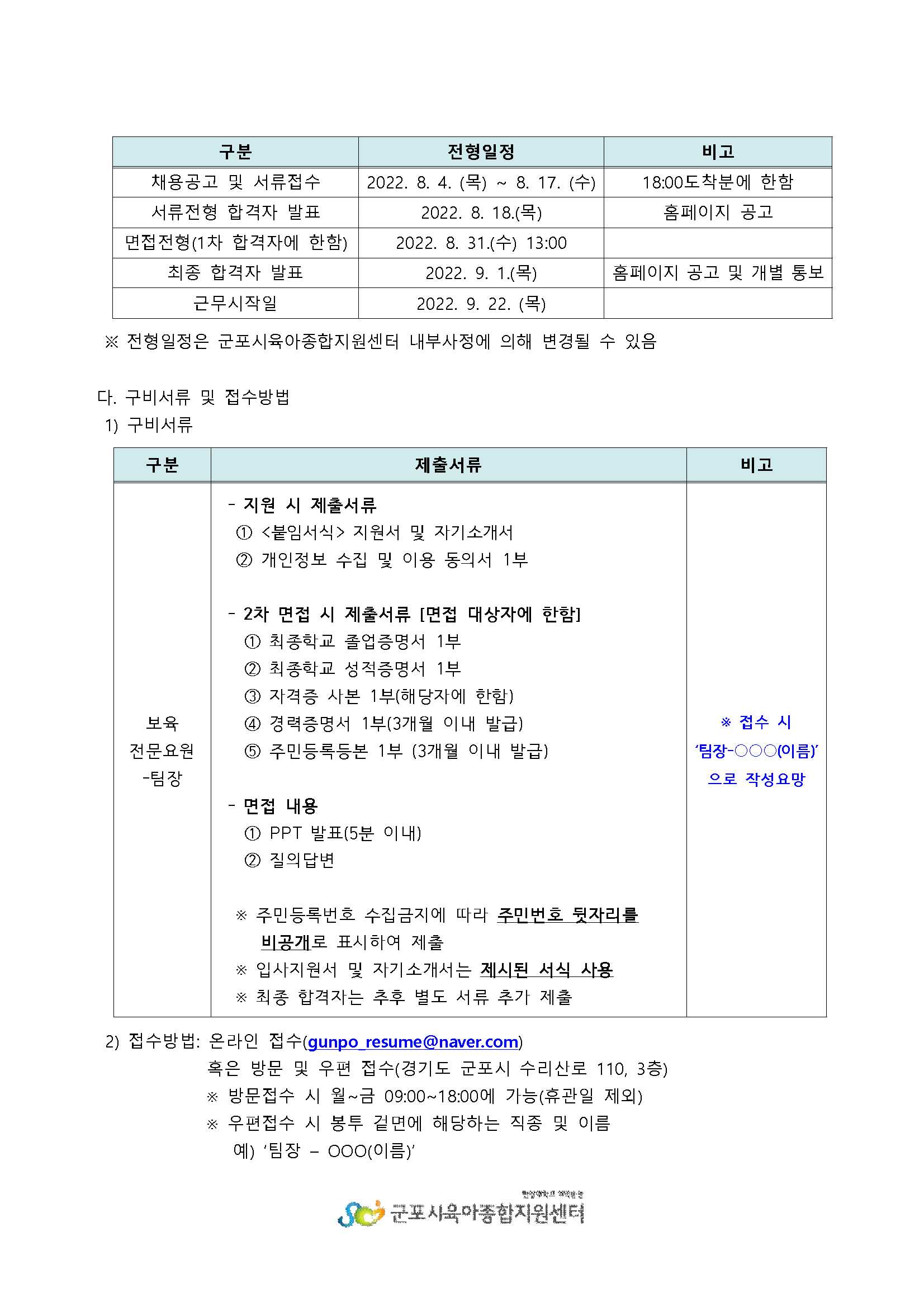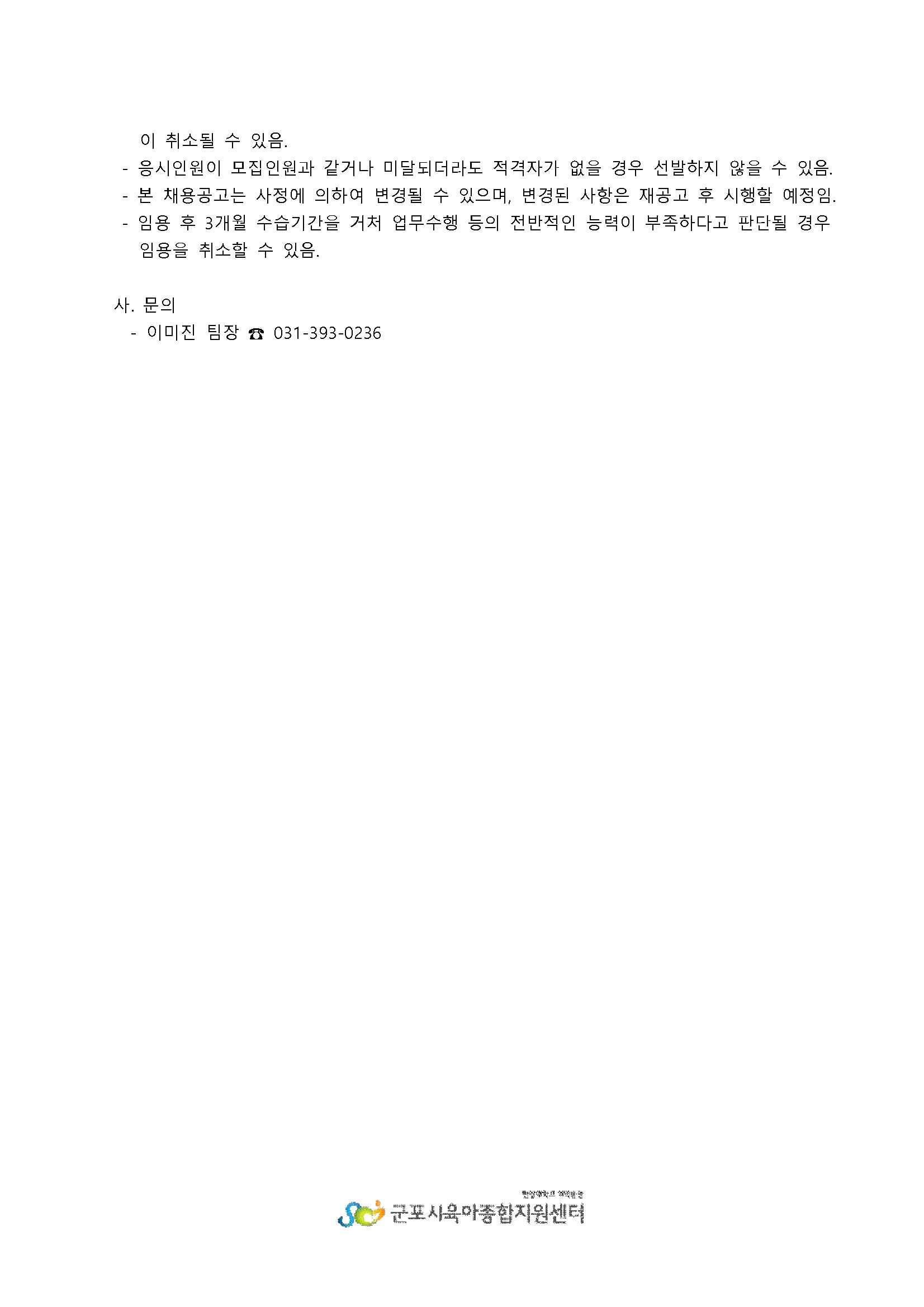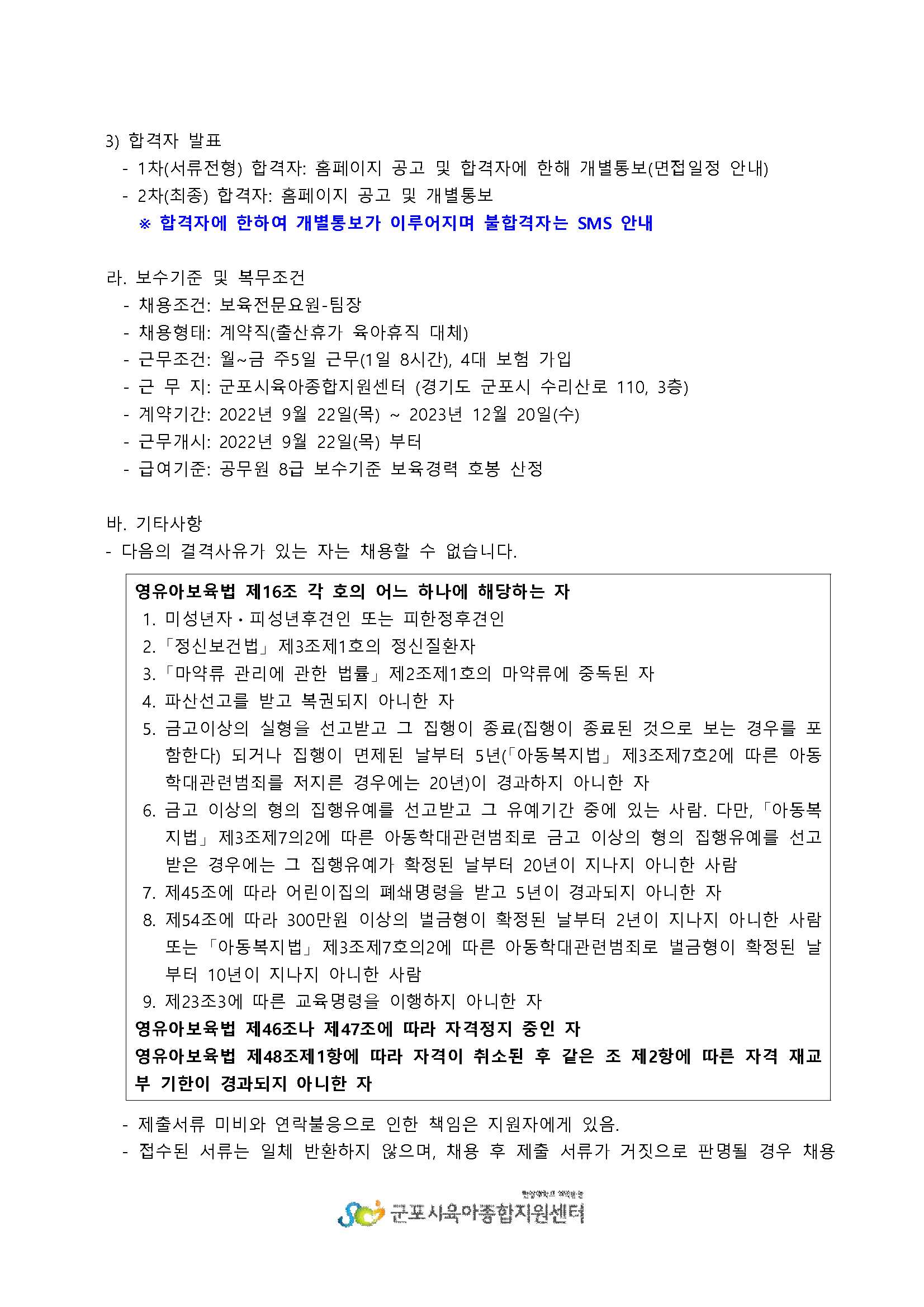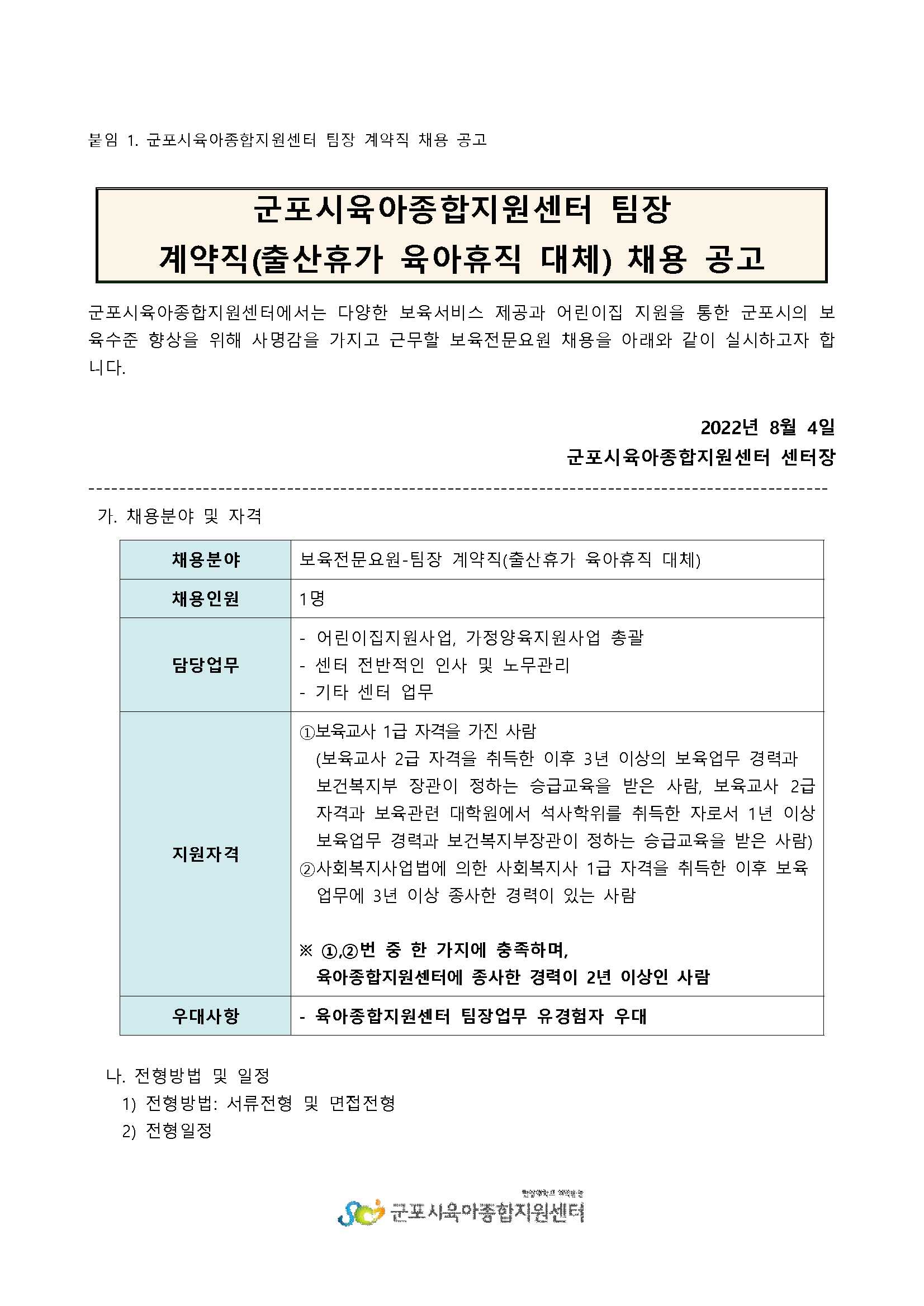 ±ºÆ÷½ÃÀ°¾ÆÁ¾ÇÕÁö¿ø¼¾ÅÍ ÆÀÀå °è¾àÁ÷(Ãâ»êÈÞ°¡ À°¾ÆÈÞÁ÷ ´ëü) ä¿ë °ø°í