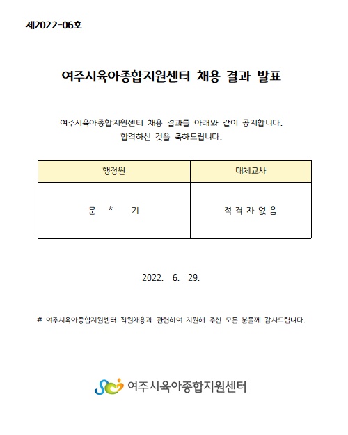 Á¦2022-06È£ ÇàÁ¤¿ø(Ãâ»ê ¹× À°¾ÆÈÞÁ÷´ëü) ¹× ´ëü±³»ç ÇÕ°ÝÀÚ ¾È³»