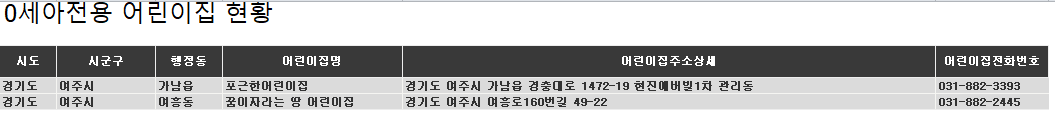 ¿©Áֽà 0¼¼¾Æ Àü¿ë ¾î¸°ÀÌÁý ÇöȲ ( 22.06.30 ±âÁØ)