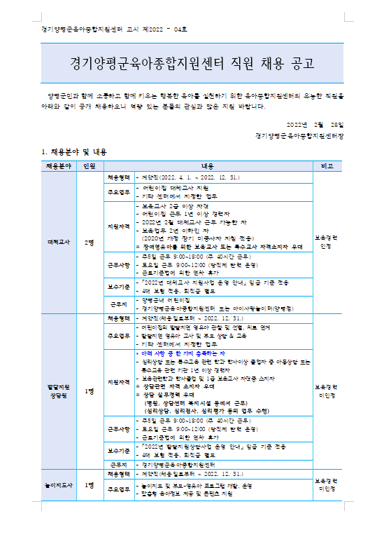 ºÙÀÓ1. 2022³â Á¦4Â÷ ¾çÆò±ºÀ°¾ÆÁ¾ÇÕÁö¿ø¼¾ÅÍ Á÷¿øÃ¤¿ë °ø°í¹®_0228.hwp