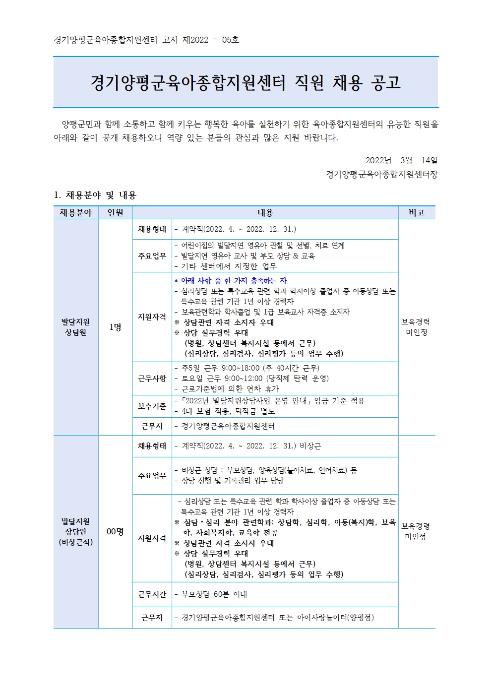 ºÙÀÓ1. 2022³â Á¦5Â÷ ¾çÆò±ºÀ°¾ÆÁ¾ÇÕÁö¿ø¼¾ÅÍ Á÷¿øÃ¤¿ë °ø°í¹®_0314.hwp
