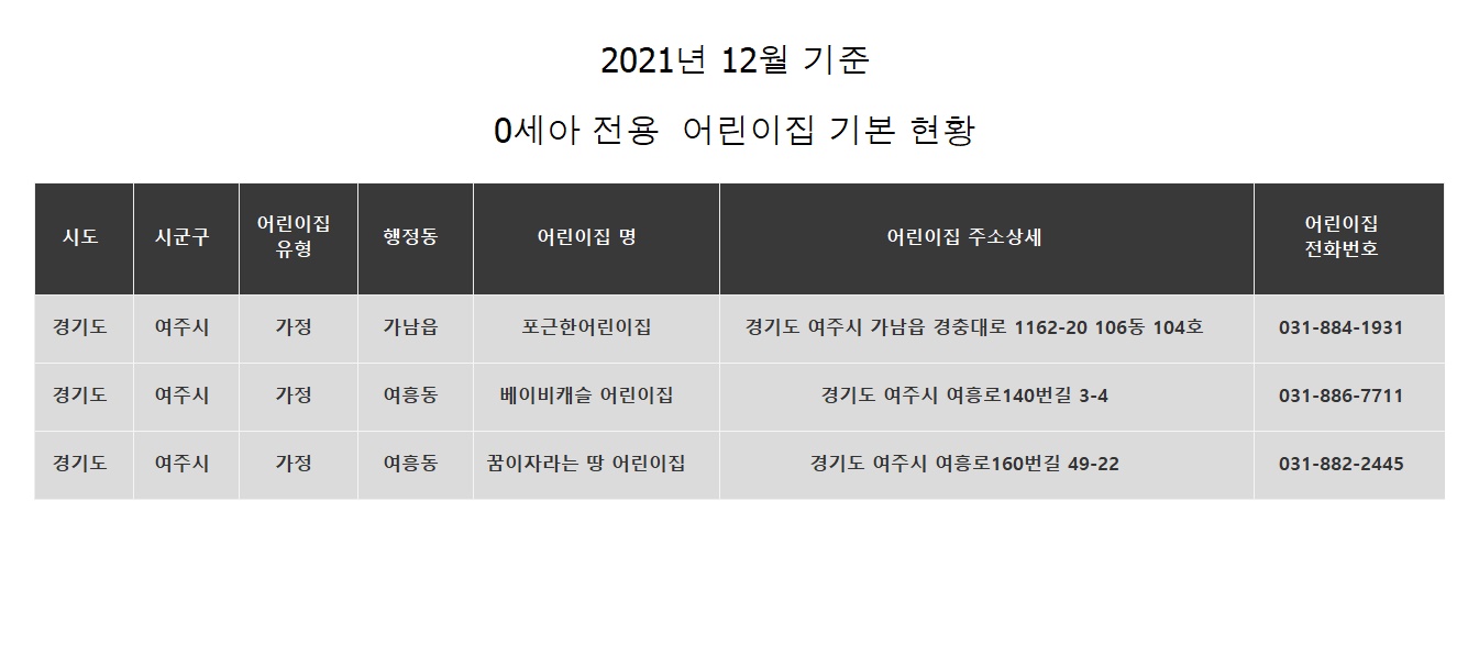 ¿©Áֽà °ü³» 0¼¼¾Æ Àü¿ë ¾î¸°ÀÌÁý ±âº» ÇöȲ / 2021³â 12¿ù ±âÁØ