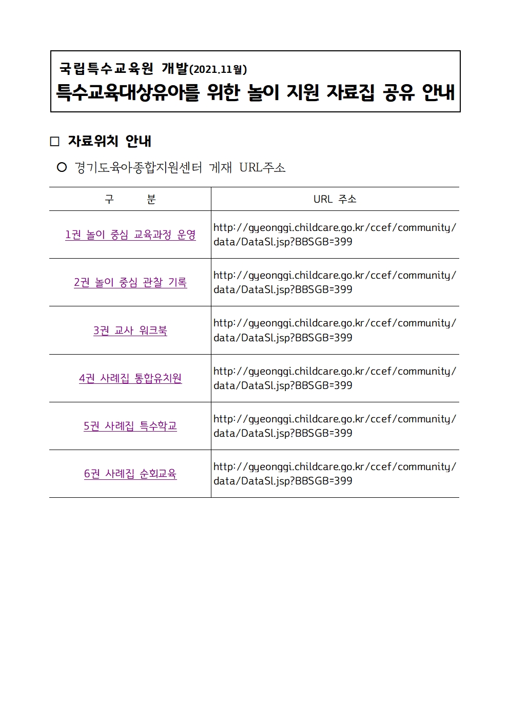 Ư¼ö±³À°´ë»óÀ¯¾Æ¸¦ À§ÇÑ ³îÀÌ Áö¿ø ÀÚ·áÁý °øÀ¯