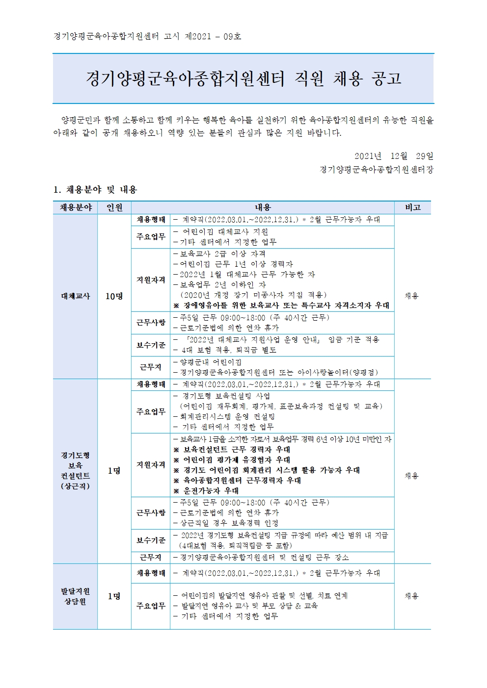 [°æ±â¾çÆò±ºÀ°¾ÆÁ¾ÇÕÁö¿ø¼¾ÅÍ] 2021³â Á¦9Â÷ Á÷¿ø ä¿ë¸ðÁý°ø°í