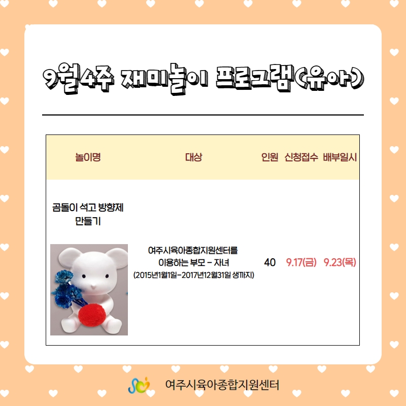 ½Å û : ¿©ÁÖ½ÃÀ°¾ÆÁ¾ÇÕÁö¿ø¼¾ÅÍȨÆäÀÌÁö> ºÎ¸ð-ÀÚ³à ±³À°½Åû>ºÎ¸ð Çà»ç ¹× ±³À°> ºÎ¸ð-ÀÚ³à Âü¿© 9¿ù ´Þ·Â ¹èºÎÀÏÁ¤ ½ÅûÁ¢¼ö