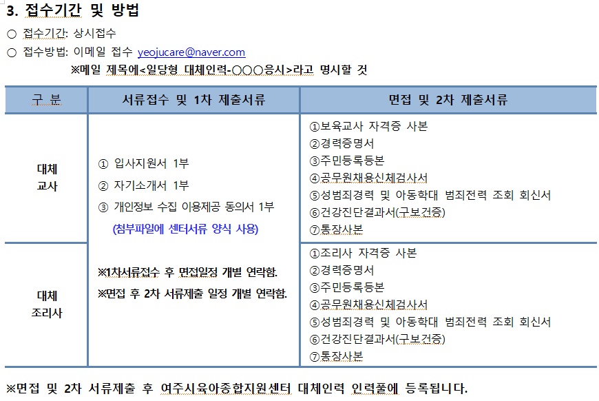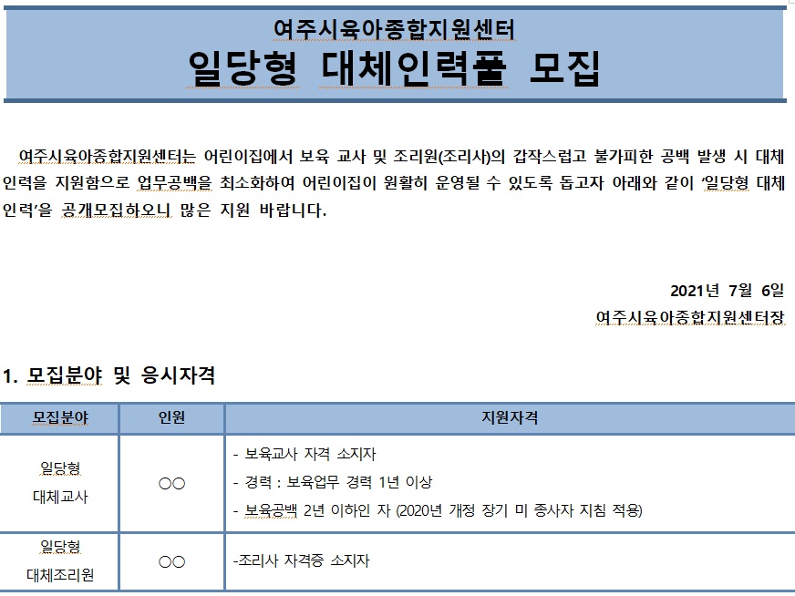 [¿©ÁÖ½ÃÀ°¾ÆÁ¾ÇÕÁö¿ø¼¾ÅÍ] ÀÏ´çÇü ´ëüÀηÂÇ® ¸ðÁý(´ëü±³»ç,Á¶¸®»ç)