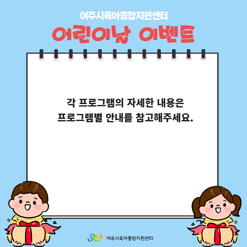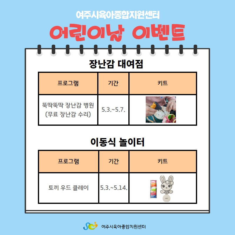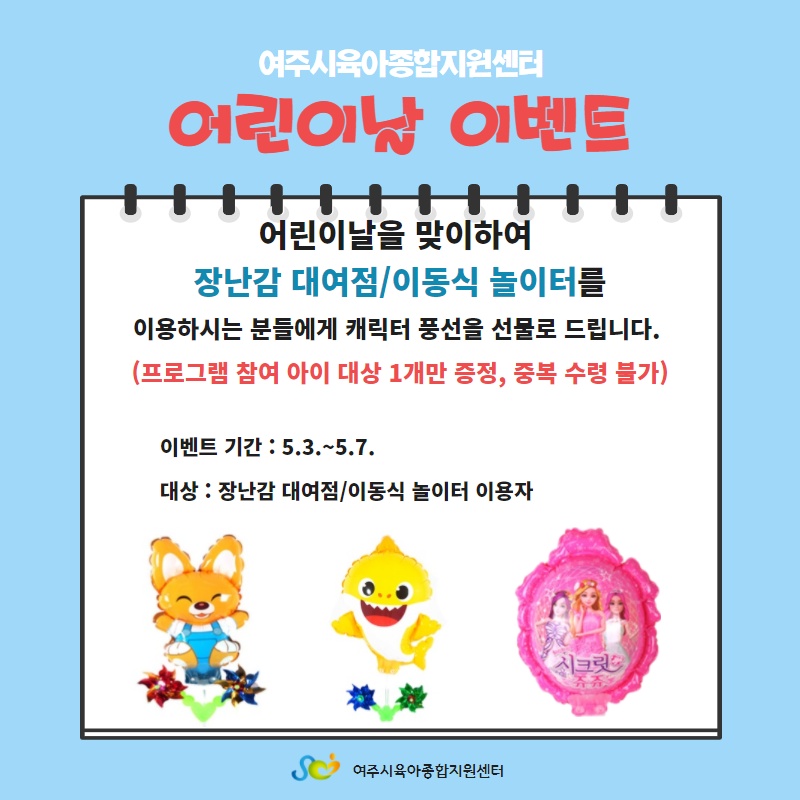 ¿©ÁÖ½ÃÀ°¾ÆÁ¾ÇÕÁö¿ø¼¾ÅÍ (Àå³°¨ ´ë¿©Á¡/ À̵¿½Ä ³îÀÌÅÍ) ¾î¸°À̳¯ À̺¥Æ® ¼±¹° ÁõÁ¤