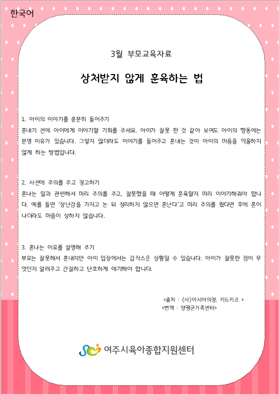 | ´Ù¹®È°¡Á¤À» À§ÇÑ 3¿ù ºÎ¸ð±³À°ÀÚ·á ¹ø¿ªº» | |||||