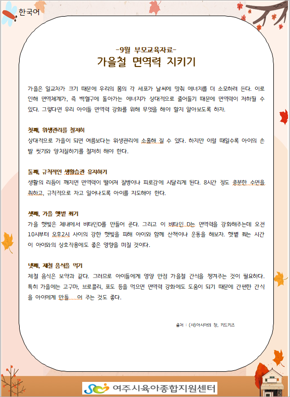 | ´Ù¹®È°¡Á¤À» À§ÇÑ 9¿ù ºÎ¸ð±³À°ÀÚ·á | |||||