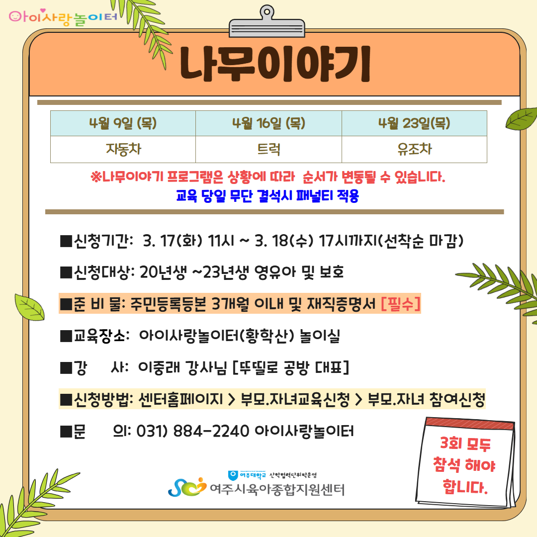 4¿ù ¾ÆÀÌ»ç¶û³îÀÌÅÍ ³ª¹«À̾߱â ÇÁ·Î±×·¥ ¾È³»