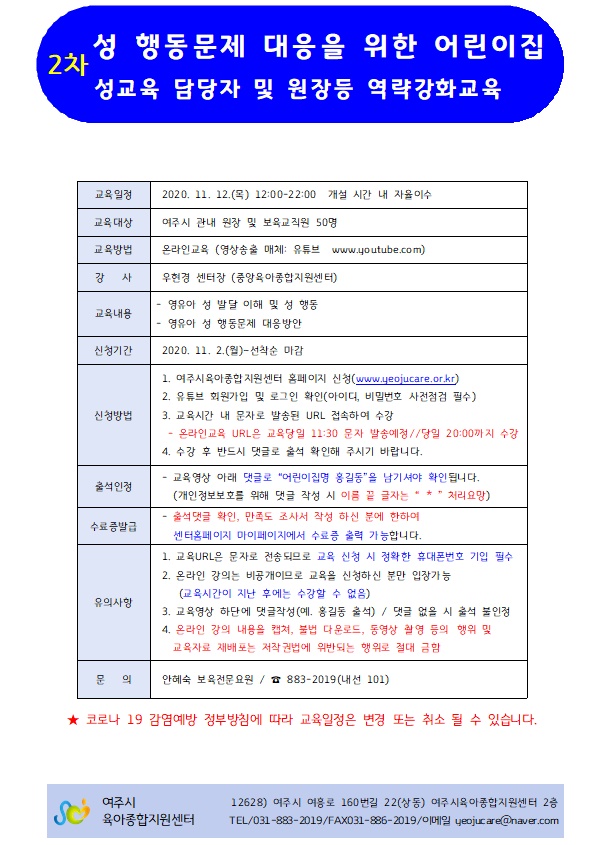 | ±³À°ÀÏ | 2020-11-12(¸ñ) | ||