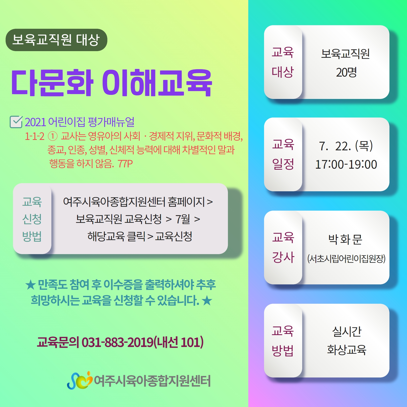 | ±âŸ»çÇ× | # ½Ç½Ã°£ È»ó°ÀÇ(zoom)À¸·Î ÁøÇàÇÕ´Ï´Ù. # ±³À° ¼ö·á ÈÄ ¼³¹®Áö ÀÛ¼ºÀ» ¿Ï·áÇØ¾ß À̼öÁõ Ãâ·ÂÀÌ °¡´ÉÇÕ´Ï´Ù. # À̼öÁõ Ãâ·ÂÀ» ¿Ï·áÇÏ¼Å¾ß ÃßÈÄ ´ÙÀ½ ±³À°À» ½ÅûÇÒ ¼ö ÀÖ½À´Ï´Ù. |