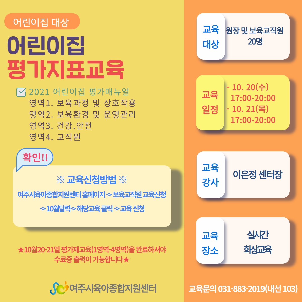 | ±³À°ÀÏ | 2021-10-20(¼ö) 2021-10-21(¸ñ) |