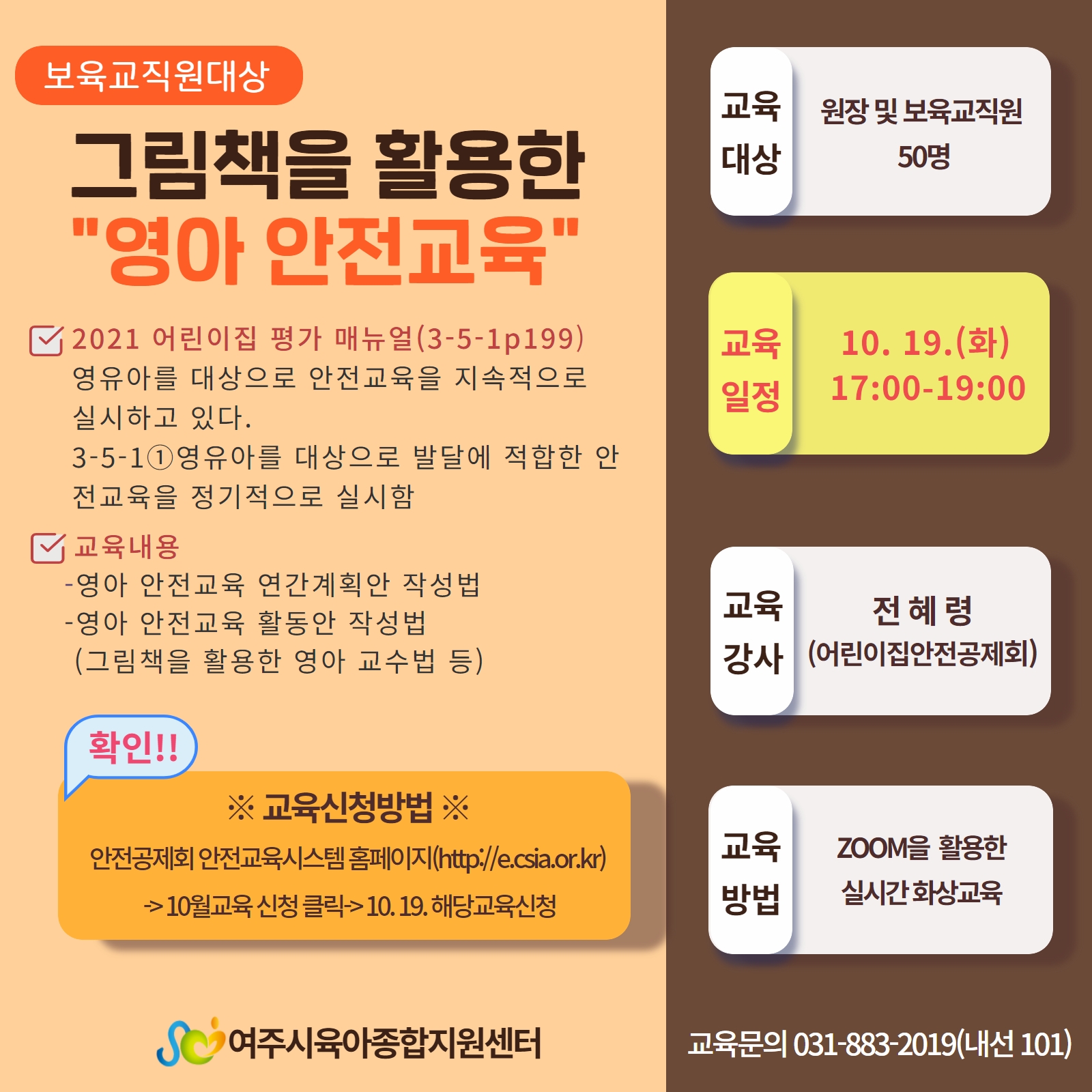 | ±âŸ»çÇ× | #±³À°½Åû¹æ¹ý ¹× ¼ö·áÁõ ¹ß±Þ¾È³» - ¾î¸°ÀÌÁý ¾ÈÀü°øÁ¦È¸ ¾ÈÀü±³À°½Ã½ºÅÛ °³º°½Åû (http://e.csia.or.kr/index/) - ±³À° ±³Àç ¼¾ÅÍ ¹æ¹®¼ö·É (10/12-10/15 ±â°£³» ¼ö·É) - ±³À° ¿Ï·á ÈÄ ¾î¸°ÀÌÁý ¾ÈÀü°øÁ¦È¸ ¾ÈÀü±³À°½Ã½ºÅÛ È¨ÆäÀÌÁö¸¦ ÅëÇØ ¹ß±Þ #À¯ÀÇ»çÇ× 1. ±³À°ÀÏÁ¤ ¹× ±³À°¹æ¹ýÀ» È®ÀÎÇÏ½Ã°í ½ÅûÇϽñ⠹ٶø´Ï´Ù. 2. ±³À°Ãë¼Ò, ½Åû°¡ º¯°æÀÌ ºÒ°¡ÇÕ´Ï´Ù. 3. ±³À° ³»¿ëÀ» ĸÃÄ, ºÒ¹ý´Ù¿î, µ¿¿µ»óÀ¸·Î ÃÔ¿µÇÏ´Â µîÀÇ ÇàÀ§´Â ÀúÀ۱ǹý¿¡ À§¹ÝµÇ´Â ÇàÀ§À̹ǷΠÀý´ë ±ÝÇÕ´Ï´Ù. |