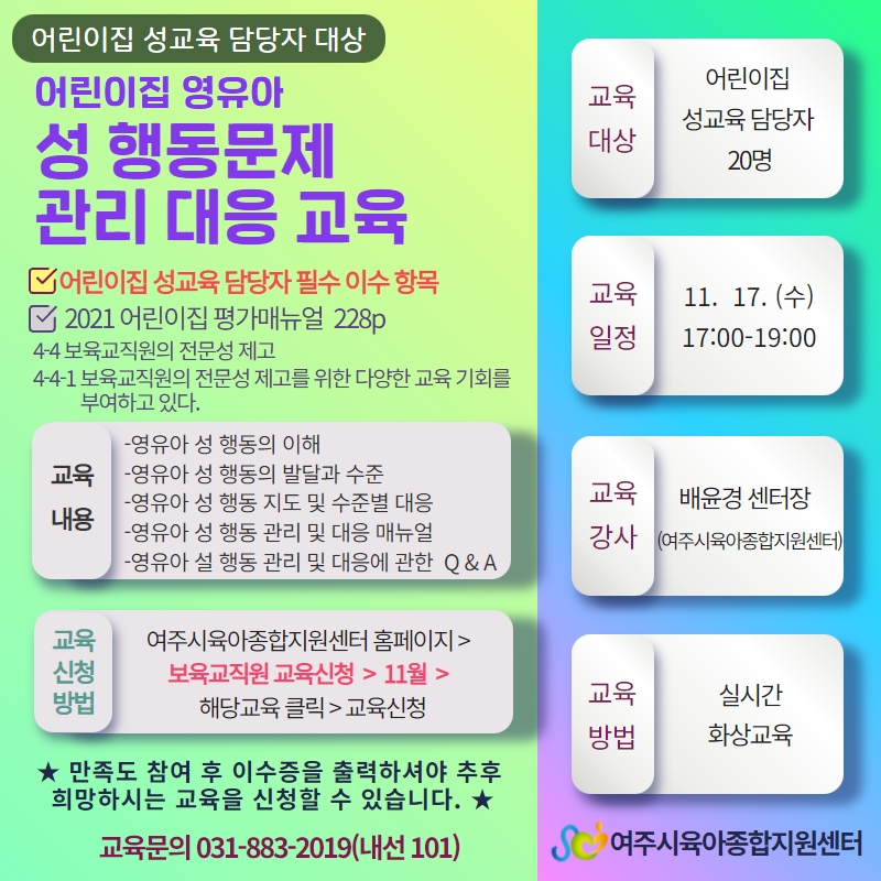 | ¾î¸°ÀÌÁý ¿µÀ¯¾Æ ¼º Çൿ¹®Á¦ °ü¸® ´ëÀÀ ±³À° | |||