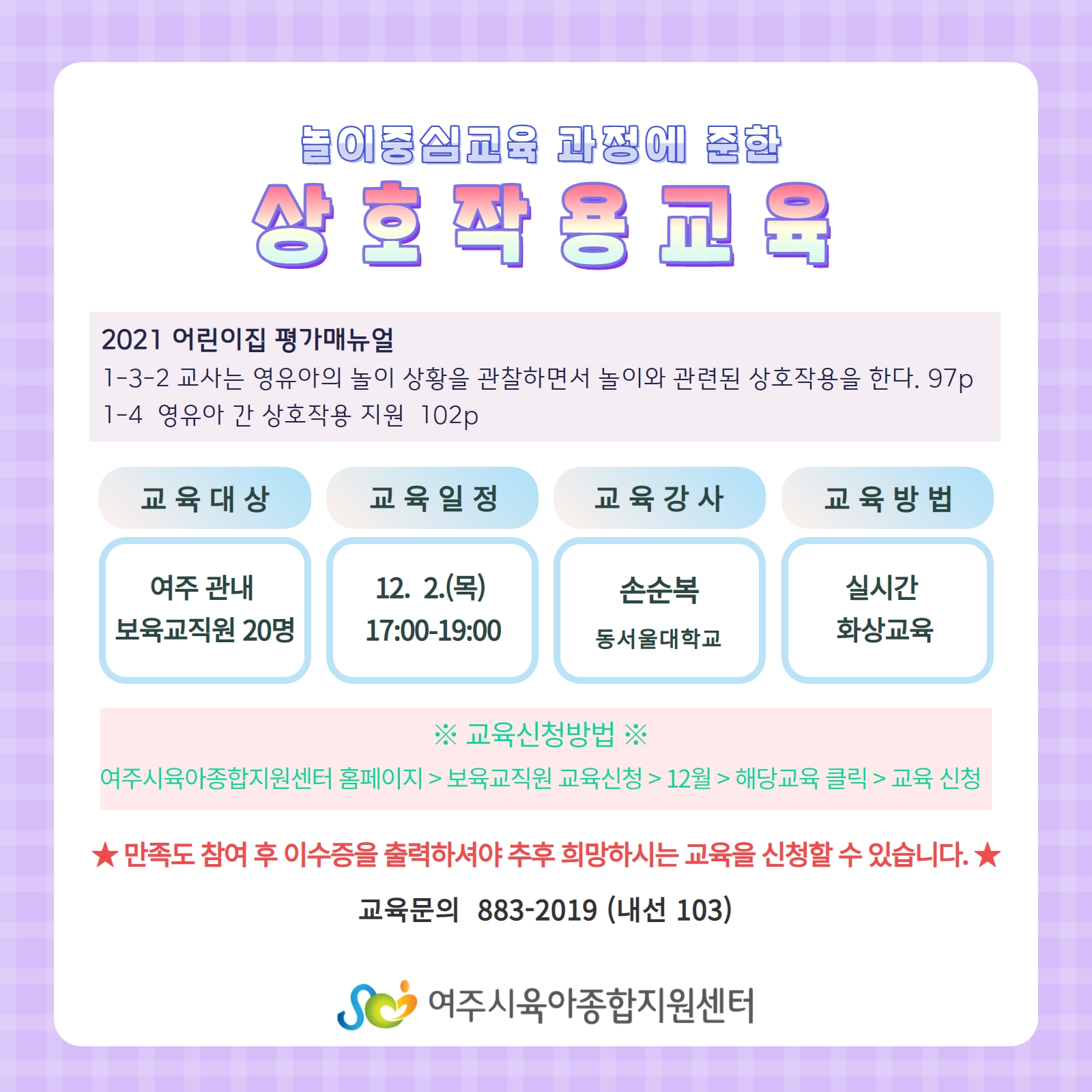 | ±âŸ»çÇ× | ½Ç½Ã°£ È»ó(ZOOM±³À°)½Ç½Ã ¡ØZOOM±³À° -±³À° ID, ºñ¹Ð¹øÈ£ ¼ÛÃâ (°³ÀÎÀüȹøÈ£ Á¤È®È÷ ±âÀÔ¹Ù¶ø´Ï´Ù.) #Ãâ¼®ÀÎÁ¤ ¹× ¼ö·áÁõ Ãâ·Â¹æ¹ý *±³À° ÀÔÀå½Ã ´ëȸíÀ» ¾î¸°ÀÌÁý¸í/¼ºÇÔ À¸·Î º¯°æ¹Ù¶ø´Ï´Ù. - ±³À° Á¾·á ÈÄ È¨ÆäÀÌÁö Á¢¼Ó ¸¸Á·µµ Á¶»ç¼ ÀÛ¼º ÇÏ¼Å¾ß ¼ö·áÁõ Ãâ·Â °¡´ÉÇÕ´Ï´Ù. - ±³À° ³»¿ëÀ» ĸÃÄ, ºÒ¹ý´Ù¿î, µ¿¿µ»óÀ¸·Î ÃÔ¿µÇÏ´Â µîÀÇ ÇàÀ§´Â ÀúÀ۱ǹý¿¡ À§¹ÝµÇ´Â ÇàÀ§À̹ǷΠÀý´ë ±ÝÇÕ´Ï´Ù |