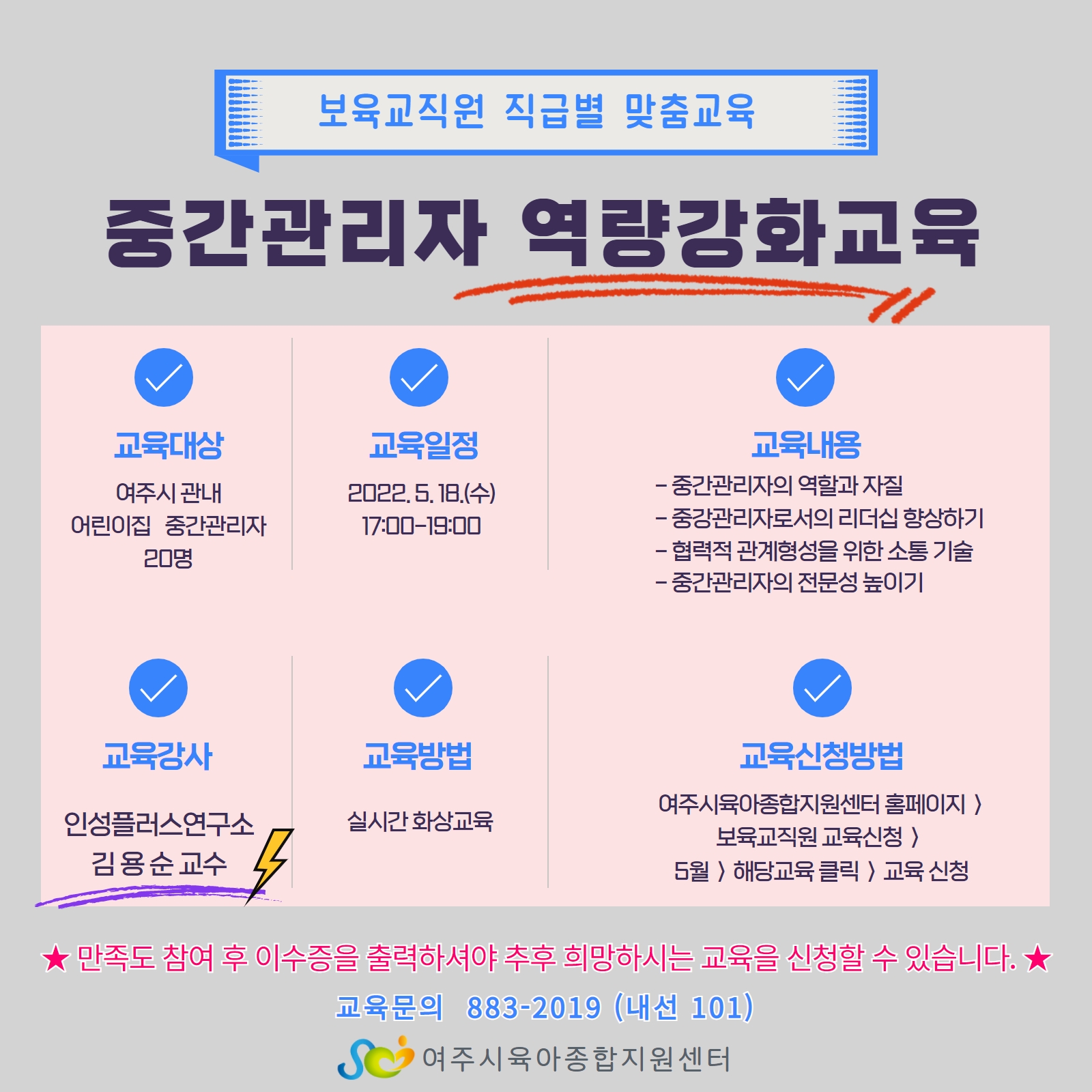 | º¸À°±³Á÷¿ø Á÷±Þº° ¸ÂÃã±³À° [Áß°£°ü¸®ÀÚ ¿ª·®°È] ±³À° | |||