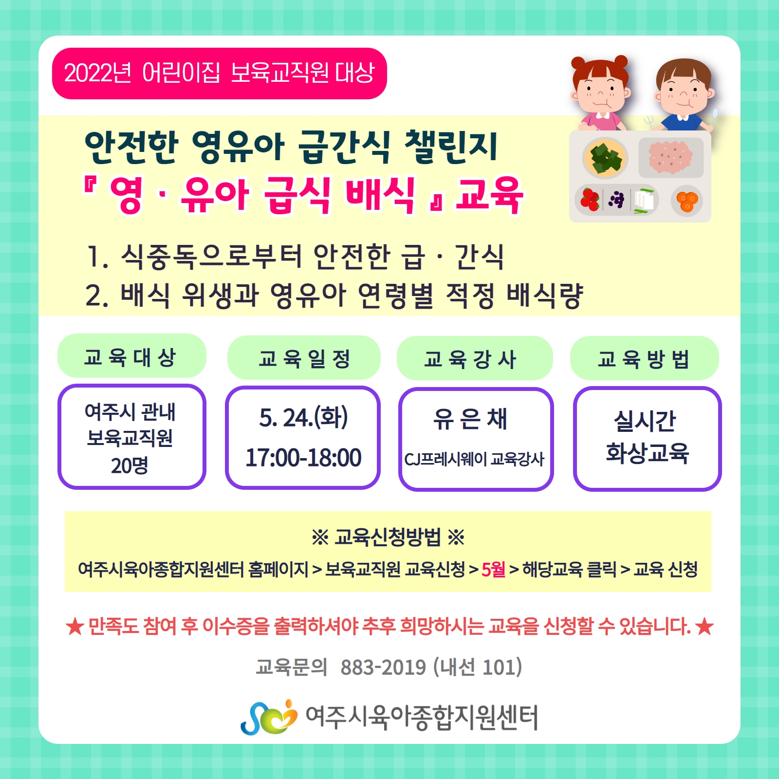 | ±âŸ»çÇ× | ¨ç ½Ç½Ã°£ È»ó±³À°À¸·Î ÁøÇàµË´Ï´Ù. ¨è ºñµð¿À¸¦ ÄѰí Âü¿©ÇÑ º¸À°±³Á÷¿ø¿¡ ÇÑÇØ Ãâ¼® ÀÎÁ¤µË´Ï´Ù. ²À!! ºñµð¿À¸¦ ÄÑ°í ±³À°¿¡ Âü¿©ÇØ ÁÖ¼¼¿ä. ¨é À̼öÁõ Ãâ·Â ¾È³» ¿©ÁÖ½ÃÀ°¾ÆÁ¾ÇÕÁö¿ø¼¾ÅÍ È¨ÆäÀÌÁö ·Î±×ÀÎ > ¿ìÃø»ó´Ü ¸¶ÀÌÆäÀÌÁö Ŭ¸¯ > ÀÌ¿ë½ÅûÇöȲ Ŭ¸¯ > ÇØ´ç±³À°¸í Ŭ¸¯ > ÇÏ´Ü "¸¸Á·µµÁ¶»ç" Ŭ¸¯ÇÏ¿© Âü¿© > »õ·Î°íħ > À̼öÁõ Ãâ·Â ¿Ï·á ¨ê À̼öÁõ Ãâ·Â±â°£ : 5. 24.(È)20:00 - 6. 10.(±Ý) 23:00 |