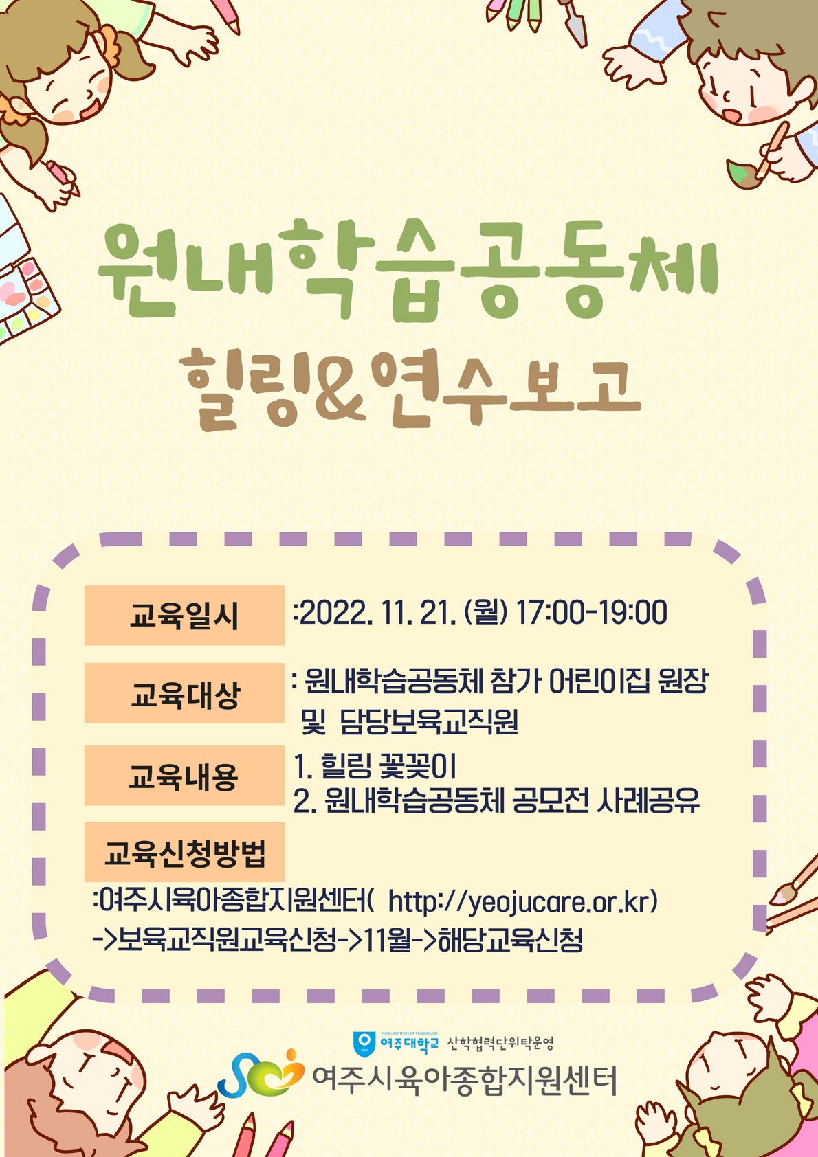 | °»ç | Àå¼Ò | ¿©ÁÖ½ÃÀ°¾ÆÁ¾ÇÕÁö¿ø¼¾ÅÍ ÁöÇÏ 1Ãþ ´Ù¸ñÀû½Ç | |