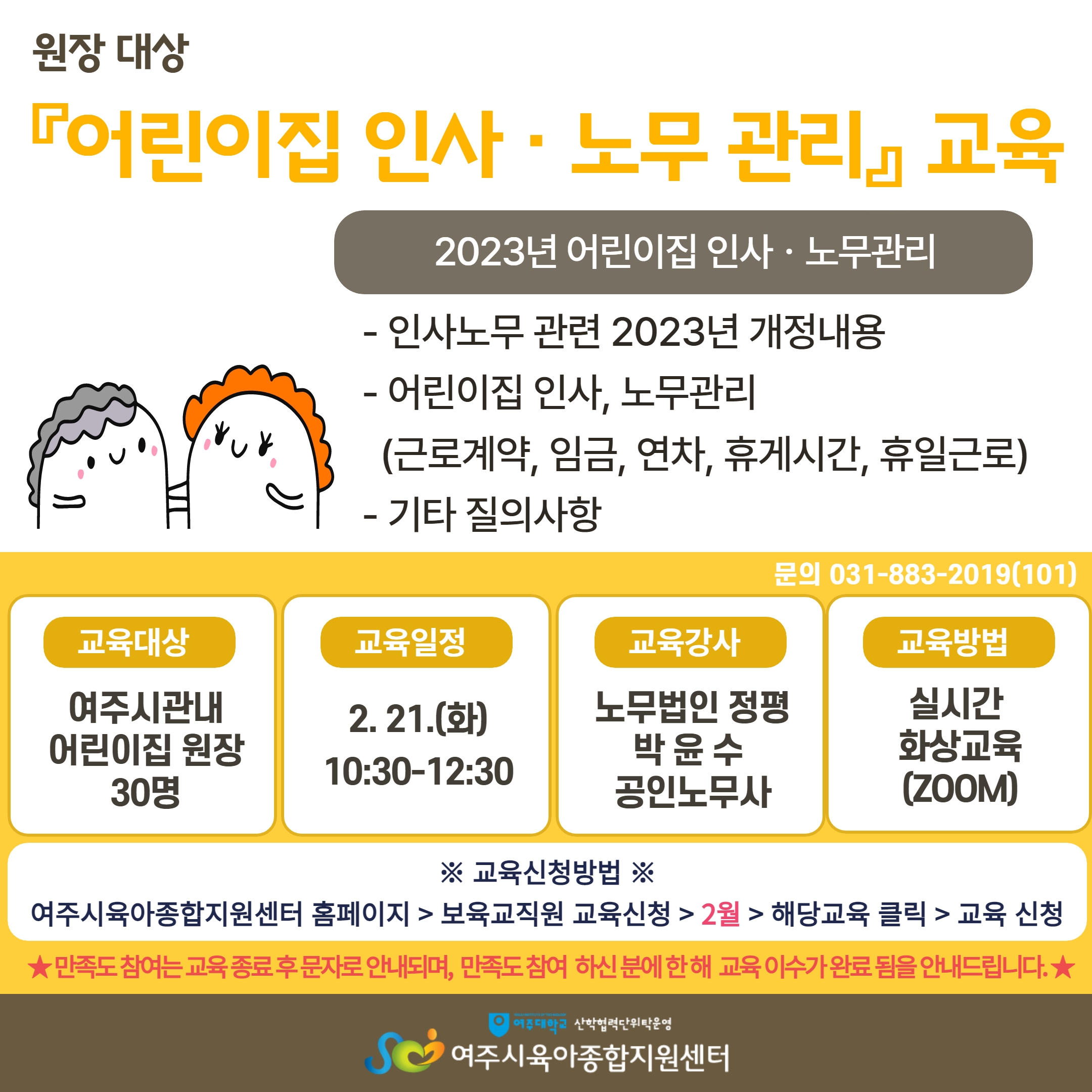 | ¿øÀå´ë»ó - 2023³â ¾î¸°ÀÌÁý Àλç³ë¹«°ü¸® ±³À° | |||