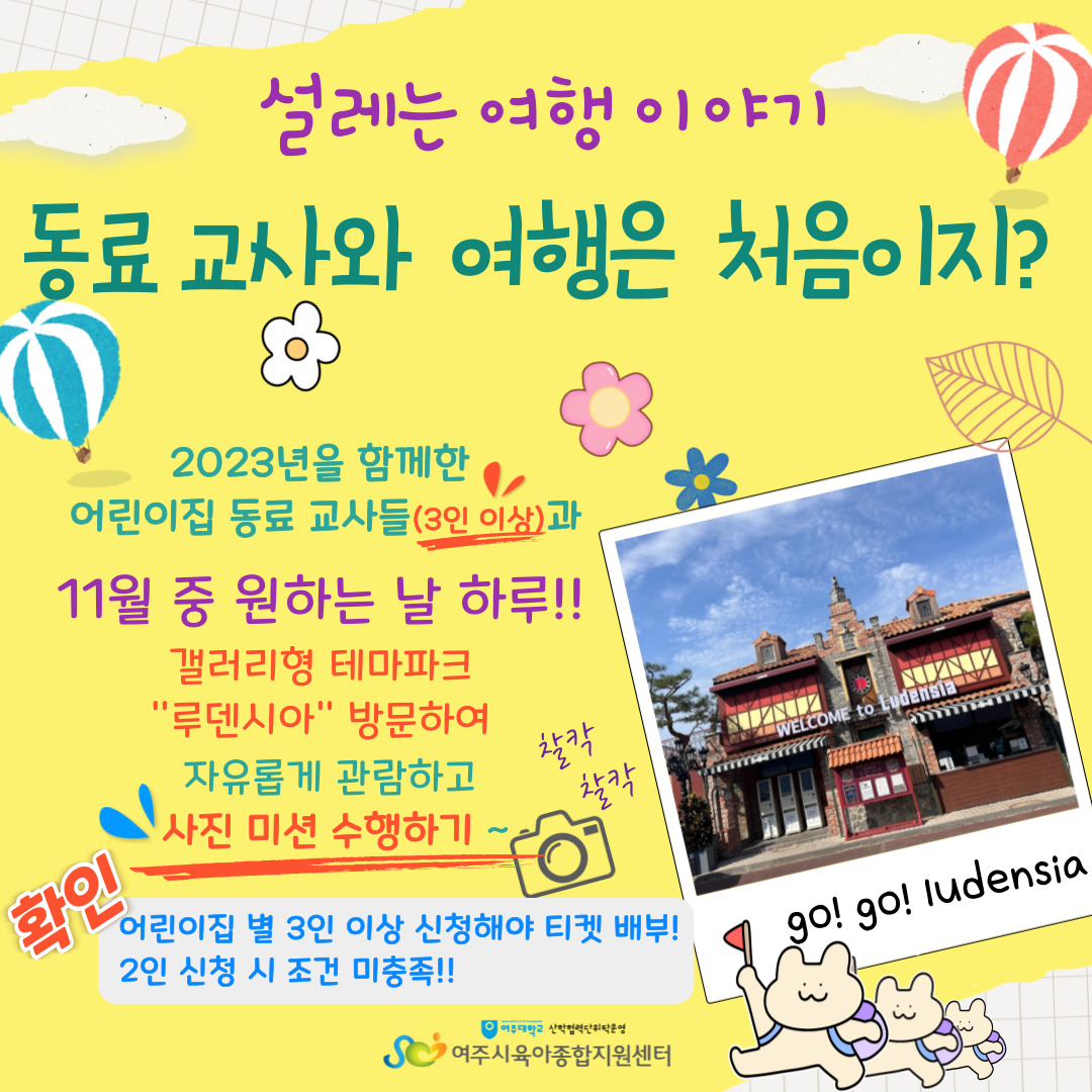 | ±âŸ»çÇ× | 1. 11¿ù ÇÑ ´Þ Áß [´Ü ÇÏ·ç!!] ¾î¸°ÀÌÁý µ¿·áµé°ú ÇÔ²² ·çµ§½Ã¾Æ °ü¶÷ 2. ¾î¸°ÀÌÁý º° 3ÀÎ ÀÌ»ó ½ÅÃ»ÇØ¾ß ƼÄÏ ¹èºÎÇÔ.!! (2ÀÎ ½Åû ½Ã Á¶°Ç ¹ÌÃæÁ·À¸·Î ƼÄÏ ¹èºÎ ¾ÈµÊ) 3. Á¦½ÃµÈ Æ÷Åä ½ºÆÌ 6°÷ Áß 2°÷ À̻󿡼 ´Üü»çÁø Âï±â 4. ¿©ÁÖ½ÃÀ°¾ÆÁ¾ÇÕÁö¿ø¼¾ÅÍ ¸ÞÀÏ(yeojucare@naver.com)·Î ´Üü»çÁø ȸ½ÅÇϱâ |