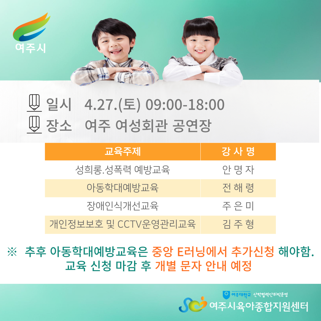 "2024³â º¸À°±³Á÷¿ø ÇʼöÀǹ«±³À° 2Â÷ (2024³â Àå¾ÖÀνݳ¼±±³À°, °³ÀÎÁ¤º¸º¸È£ ¹× CCTV¿î¿µ°ü¸®±³À°, 2024³â ¼ºÈñ·Õ¼ºÆø·Â¿¹¹æ±³À°)" ±³À° ´ëÇÑ »ó¼¼ ¾È³»