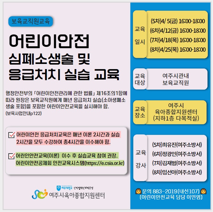 *2024³â ¾î¸°À̾ÈÀü ½ÉÆó¼Ò»ý¼ú ¹× ÀÀ±Þóġ ½Ç½À ±³À°Àº 10¿ù±îÁö ÃÑ 20ȸ ÁøÇà ¿¹Á¤ÀÔ´Ï´Ù.