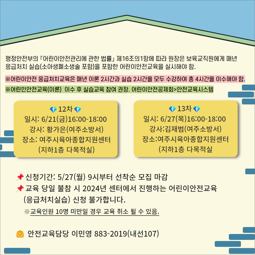 *2024³â ¾î¸°À̾ÈÀü ½ÉÆó¼Ò»ý¼ú ¹× ÀÀ±Þóġ ½Ç½À ±³À°Àº 10¿ù±îÁö ÃÑ 20ȸ ÁøÇà ¿¹Á¤À̳ª ±³À°ÀοøÀÌ 10¸í
