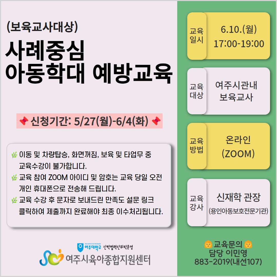 | ±³À°±â°£ | 2024-06-10(¿ù) 17½Ã00ºÐ ~ 2024-06-10(¿ù) 19½Ã00ºÐ | ||