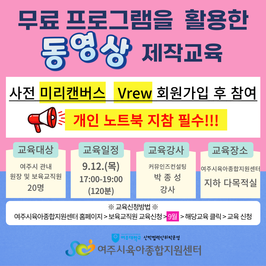 | ±âŸ»çÇ× | 1. ´ë¸é±³À°ÀÔ´Ï´Ù. 2. ±³À° Ư¼º»ó °³ÀÎ³ëÆ®ºÏ Çʼö ÁöÂüÀÔ´Ï´Ù. 3. »çÀü¿¡ ¹Ì¸®Äµ¹ö½º, Vrew ȸ¿ø°¡ÀÔ ÈÄ Âü¿©ÇÕ´Ï´Ù. |