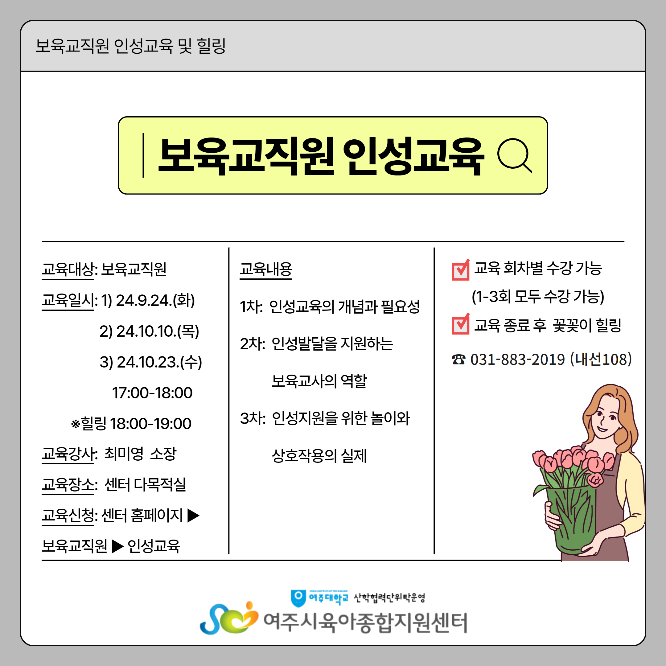 | º¸À°±³Á÷¿ø Àμº ±³À° ¹× Èú¸µ 1Â÷ | |||