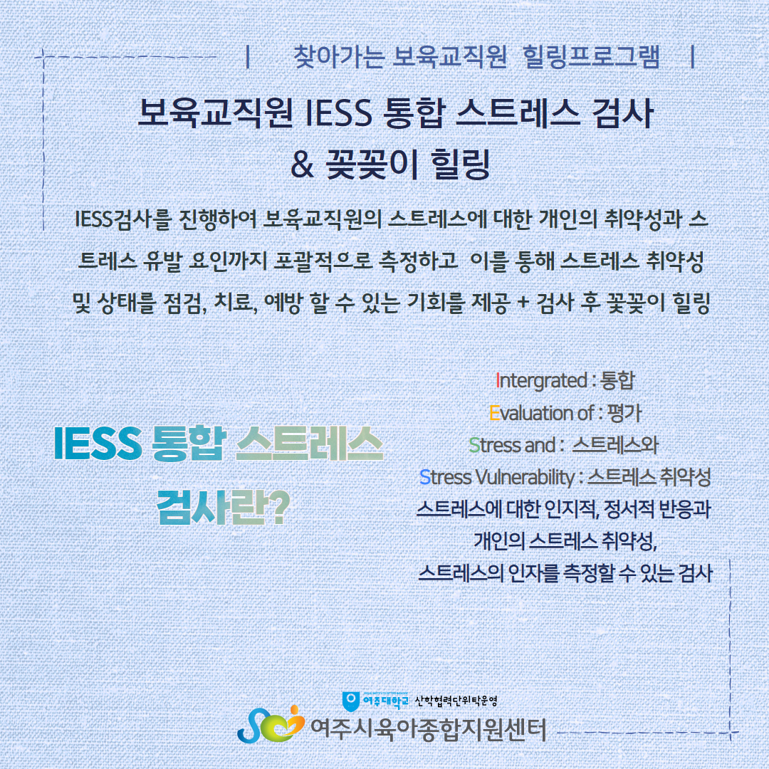 | ã¾Æ°¡´Â IESS ÅëÇÕ½ºÆ®·¹½º °Ë»ç ¹× ²É²ÈÀÌ Èú¸µ (7Â÷) | |||