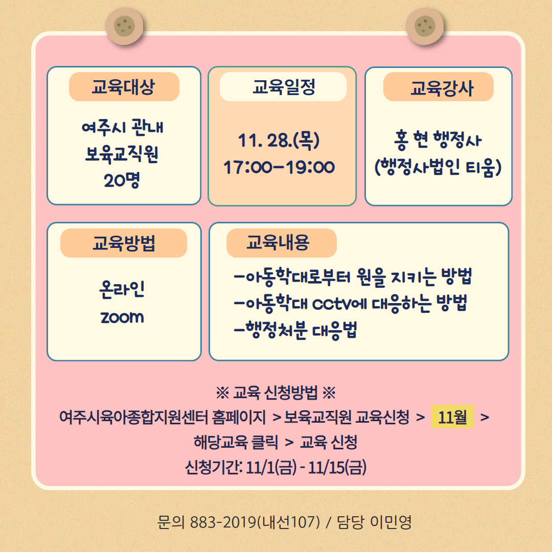 | Á¢¼ö´ë»ó | ¿øÀå, º¸À°±³Á÷¿ø | Á¤¿ø | ½Åû:20/20 ´ë±â:5/0 |