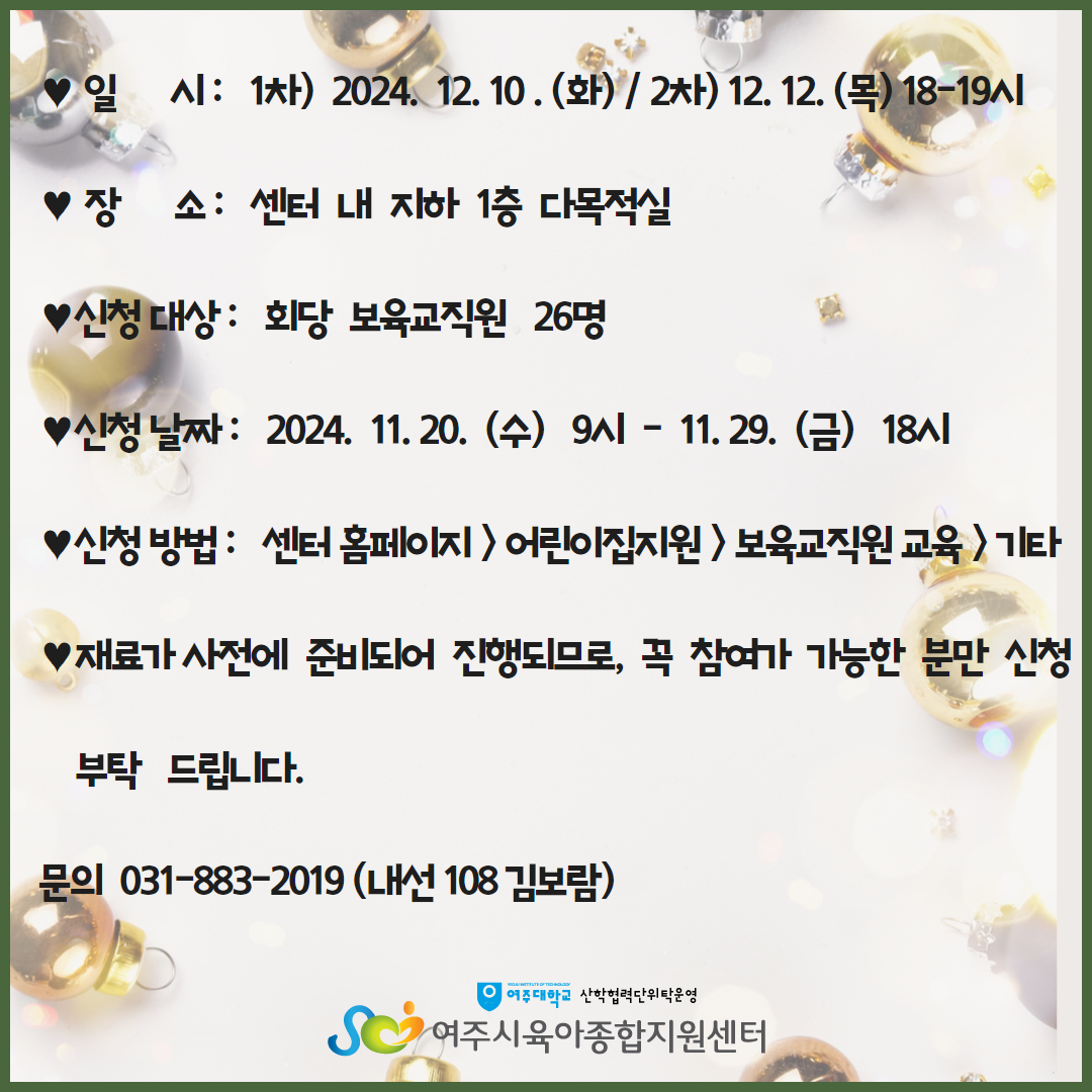 | ±³À°ÀÏ | 2024-12-12(¸ñ) | ||