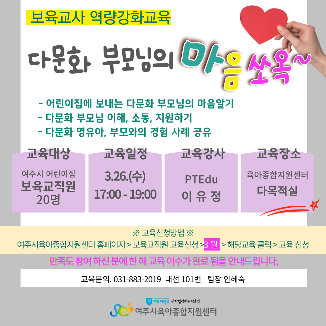 | ±âŸ»çÇ× | - º¸À°±³Á÷¿ø ¿ª·®°È±³À°ÀÔ´Ï´Ù. - ´ë¸é±³À°ÀÔ´Ï´Ù. - ±³À°¿¡ ´ÊÁö¾Ê°Ô Âü¿©ÇØ ÁÖ¼¼¿ä. |