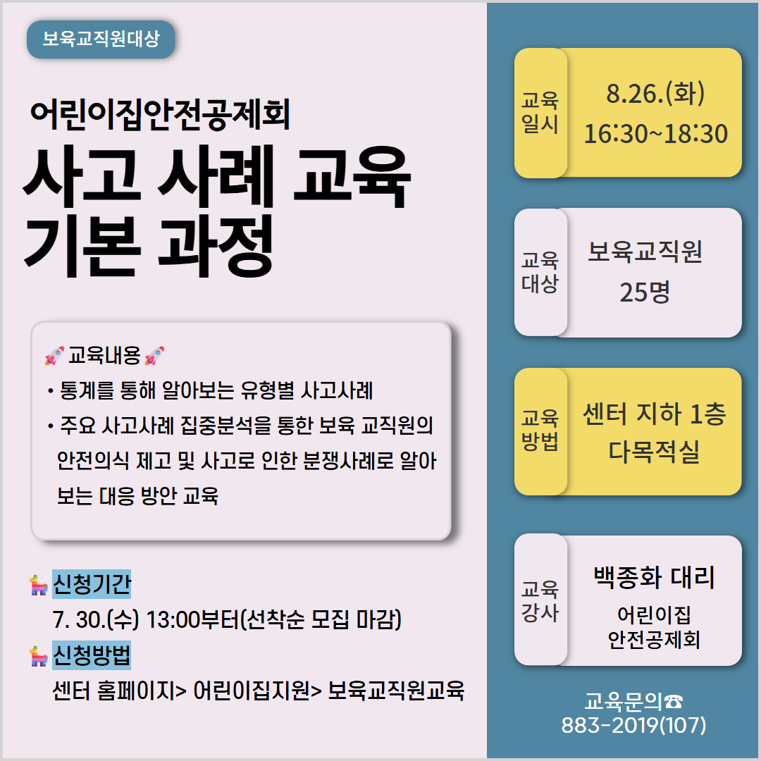 "¾î¸°ÀÌÁý¾ÈÀü°øÁ¦È¸ »ç°í.»ç·Ê±³À° <º¸À°±³Á÷¿ø´ë»ó ±âº»°úÁ¤>" ±³À° ´ëÇÑ »ó¼¼ ¾È³»
