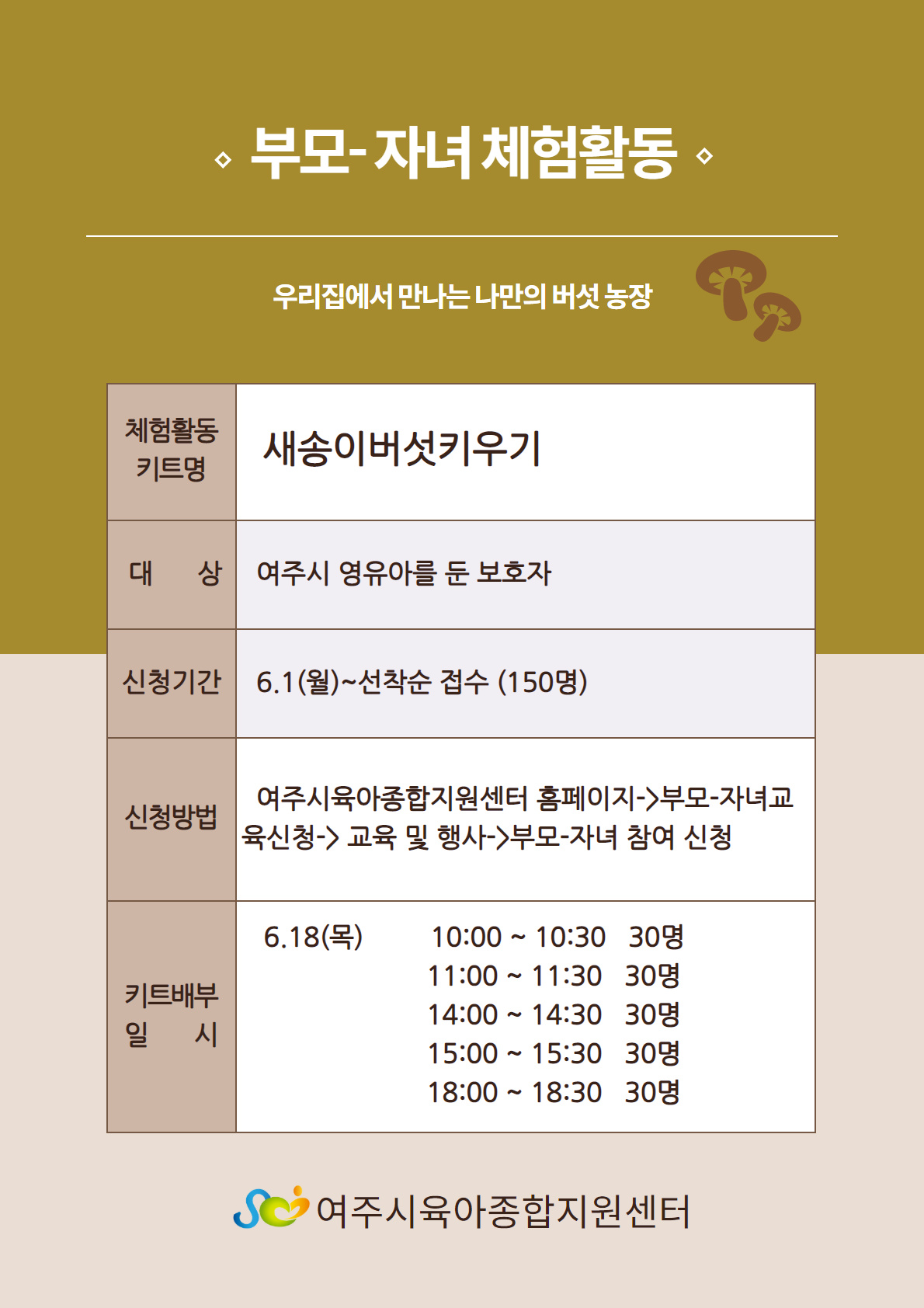 | 6¿ù18ÀÏ ºÎ¸ð -ÀÚ³à üÇèȰµ¿ ŰƮ ½Åû 10½Ã | |||