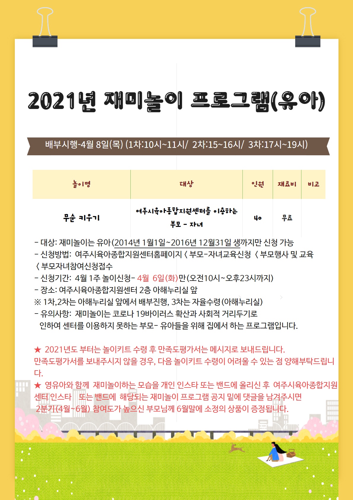 (ºñ´ë¸é) 2021³â 4¿ù1ÁÖ Àç¹Ì³îÀÌ(À¯¾Æ) ÇÁ·Î±×·¥ - ¹«¼ø Ű¿ì±â(15½Ã~16½Ã)