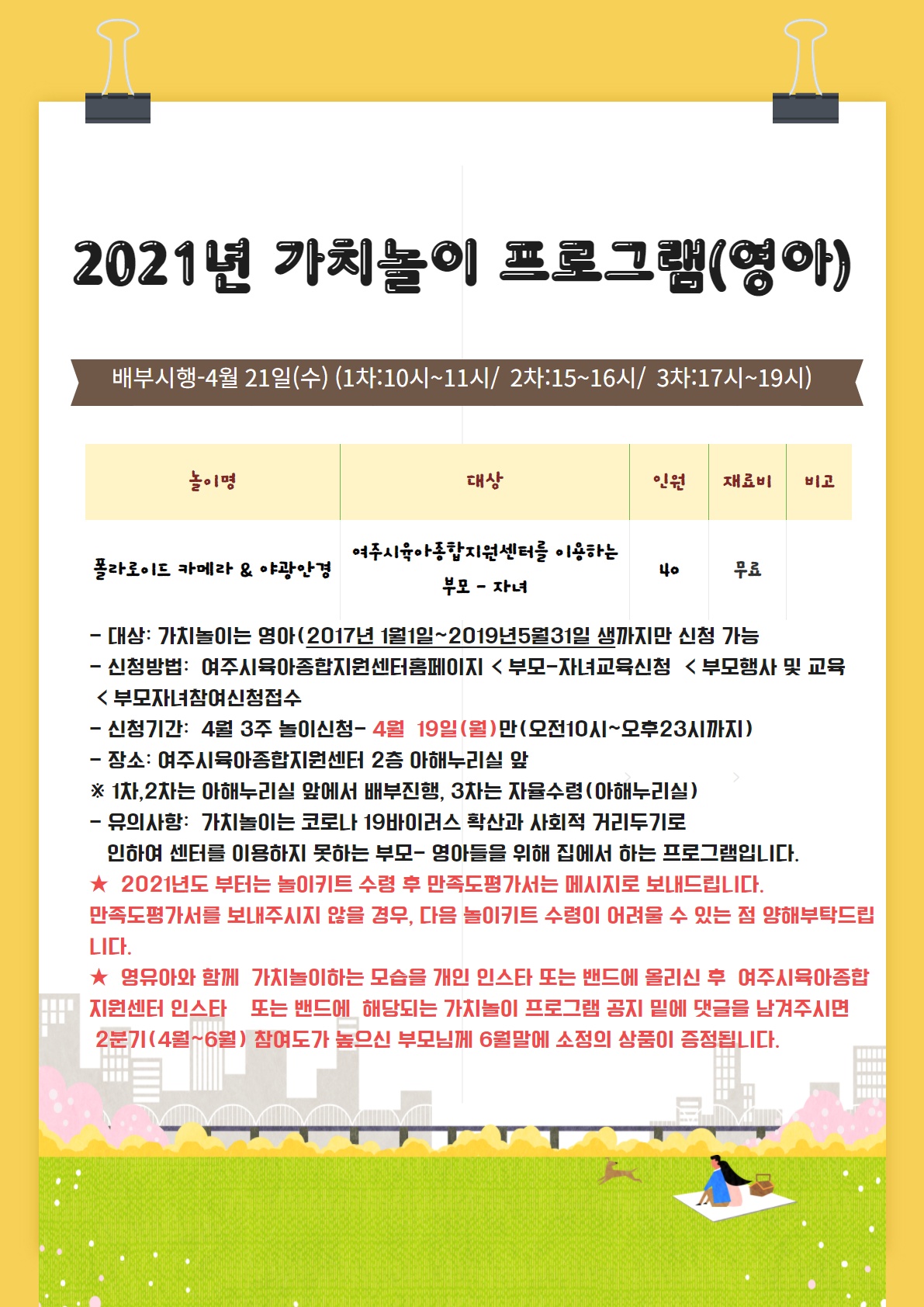 | (ºñ´ë¸é) 2021³â 4¿ù3ÁÖ °¡Ä¡³îÀÌ(¿µ¾Æ) ÇÁ·Î±×·¥ - Æú¶ó·ÎÀ̵å Ä«¸Þ¶ó & ¾ß±¤¾È°æ¸¸µé±â(15½Ã~16½Ã) | |||