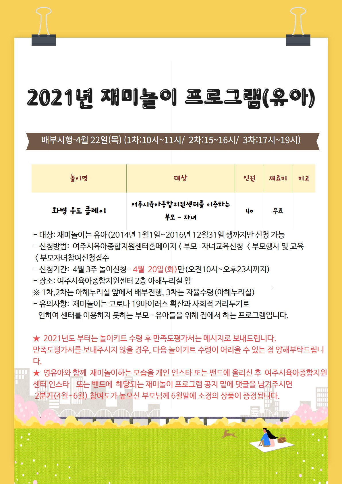 | (ºñ´ë¸é) 2021³â 4¿ù3ÁÖ Àç¹Ì³îÀÌ(À¯¾Æ) ÇÁ·Î±×·¥ - Ⱥ´¿ìµåŬ·¹ÀÌ(10½Ã~11½Ã) | |||