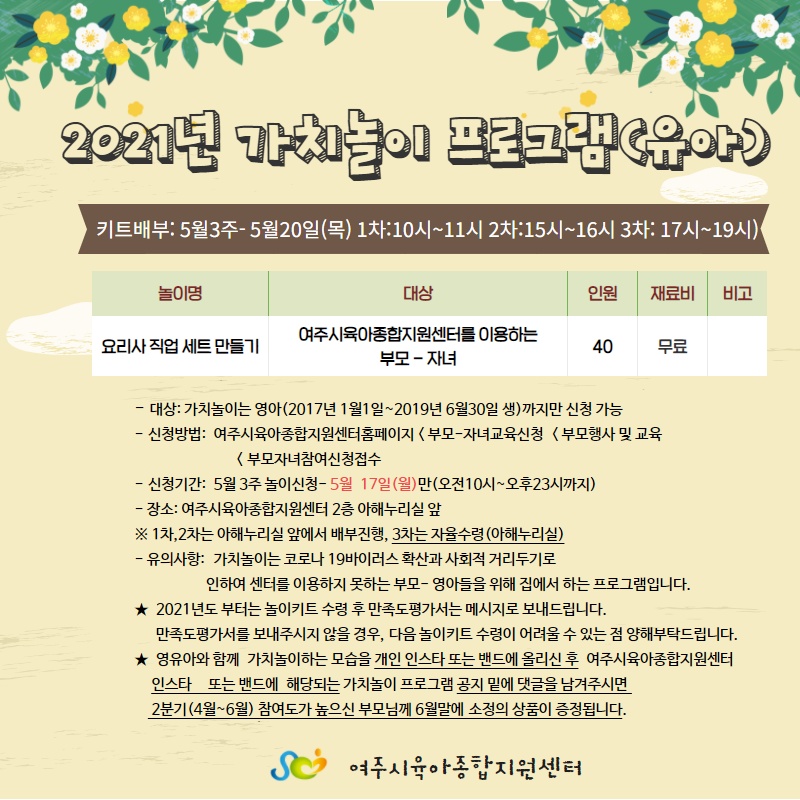 | (ºñ´ë¸é) 2021³â 5¿ù3ÁÖ °¡Ä¡³îÀÌ(¿µ¾Æ) ÇÁ·Î±×·¥ - ¿ä¸®»ç Á÷¾÷ ¼¼Æ®¸¸µé±â(10½Ã~11½Ã) | |||